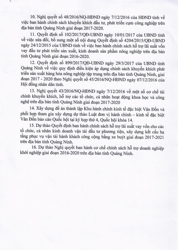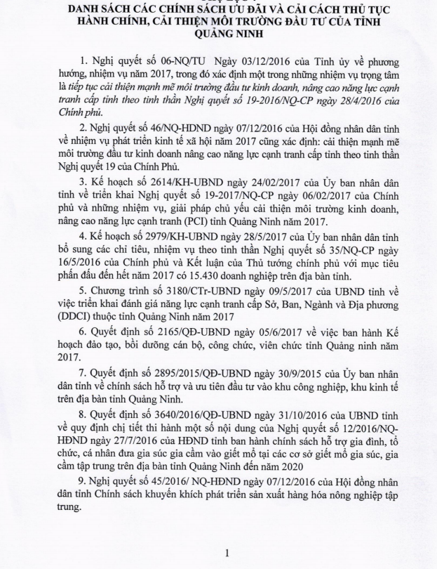 Danh sách các chính sách ưu đãi và cải các thủ tục hành chính, cải thiện môi trường đâu tư tử tỉnh Quảng Ninh