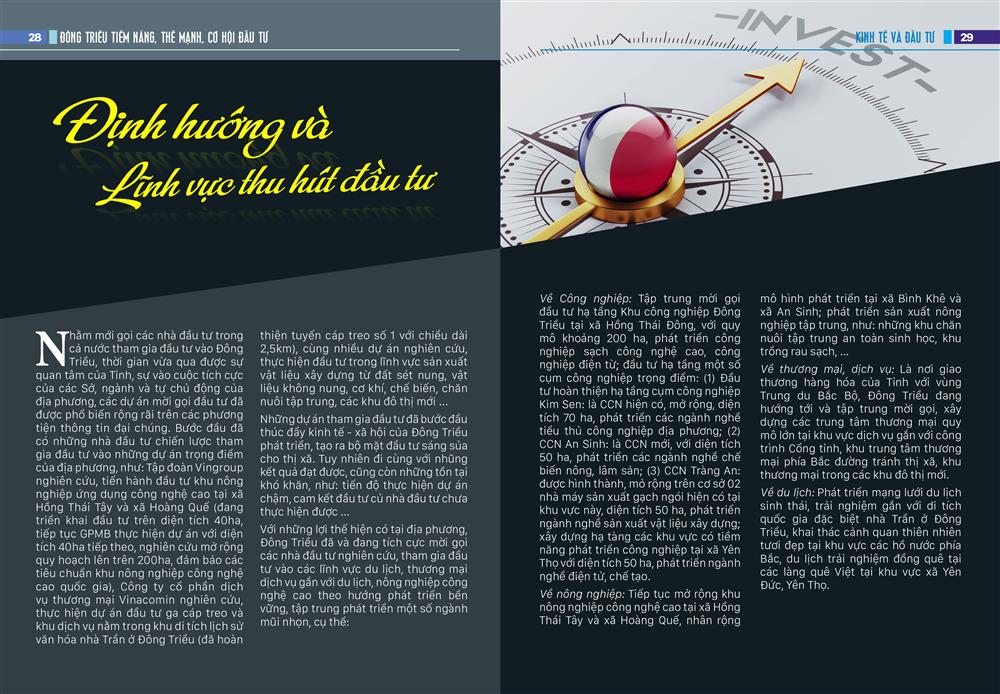 3. Phát triển kinh tế - xã hội dựa trên cơ sở phát huy các tài sản hiện có và các dự án mang tính đột phá với sự thúc đẩy từ bên ngoài, tận dụng hiệu quả lợi thế so sánh của Đông Triều, bao gồm tài sản du lịch tự nhiên và văn hoá độc đáo, tài nguyên than dồi dào và các loại tài nguyên khoáng sản khác, vị trí địa lý cũng như các tiềm năng để phát triển giao thông thủy nội địa và nền kinh tế nông nghiệp. Phát triển du lịch lịch sử tâm linh và sinh thái kết nối với quần thể các trọng điểm du lịch trong vùng.