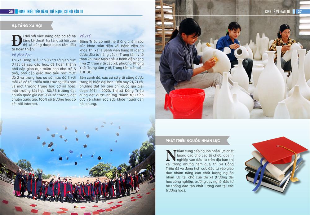 Nhằm cung cấp nguồn nhân lực chất lượng cao cho các tổ chức, doanh nghiệp vào đầu tư trên địa bàn thị xã; trong những năm qua, thị xã Đông Triều đã và đang tích cực đầu tư vào giáo dục nhằm nâng cao chất lượng nguồn nhân lực tại chỗ của thành phố (trường đại học công nghiệp, trường dạy nghề, đầu tư hệ thống đào tạo chất lượng cao tại các trường học).