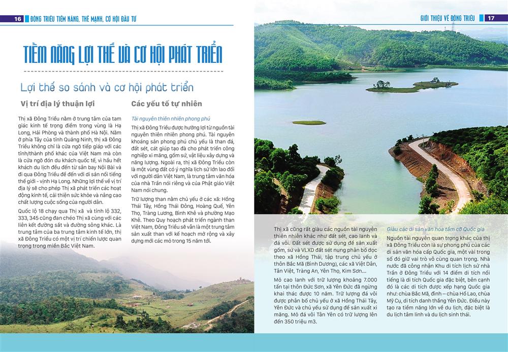 Thị xã Đông Triều được hưởng lợi từ nguồn tài nguyên thiên nhiên phong phú. Tài nguyên khoáng sản phong phú chủ yếu là than đá, đất sét, cát giúp tạo đà cho phát triển công nghiệp xi măng, gốm sứ, vật liệu xây dựng và năng lượng. Ngoài ra, thị xã Đông Triều còn là một vùng đất có ý nghĩa lịch sử lớn lao đối với người dân Việt Nam, là trung tâm văn hóa của nhà Trần nói riêng và của Phật giáo Việt Nam nói chung.