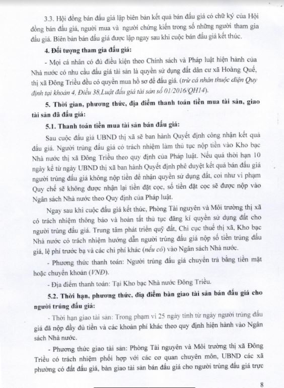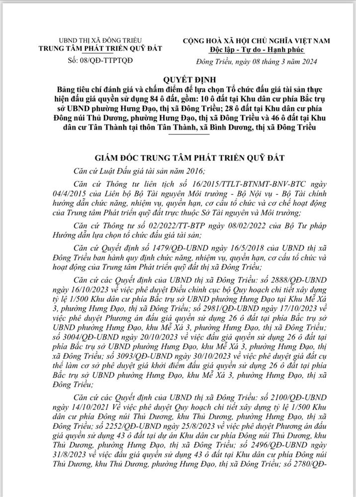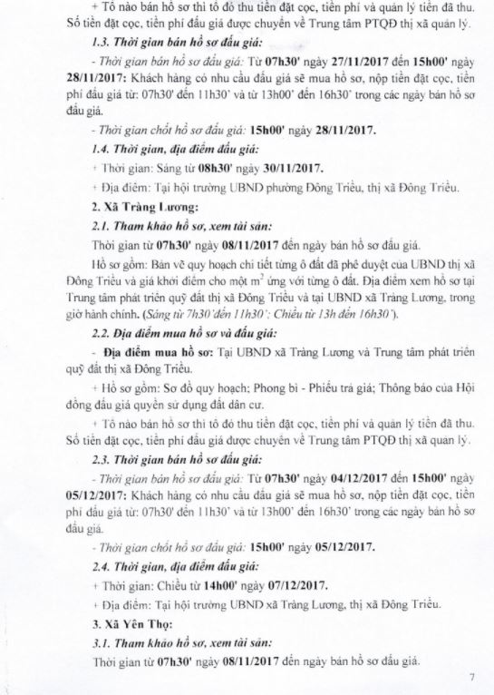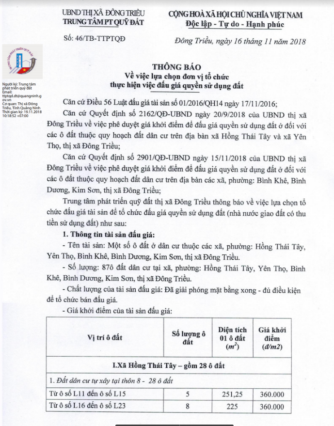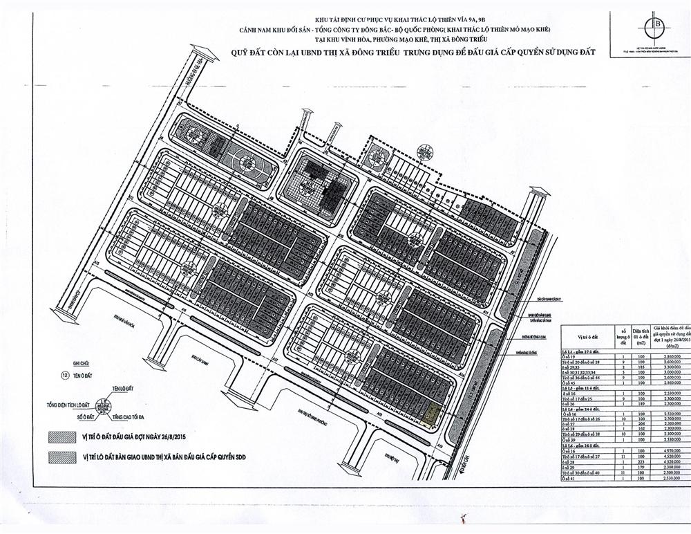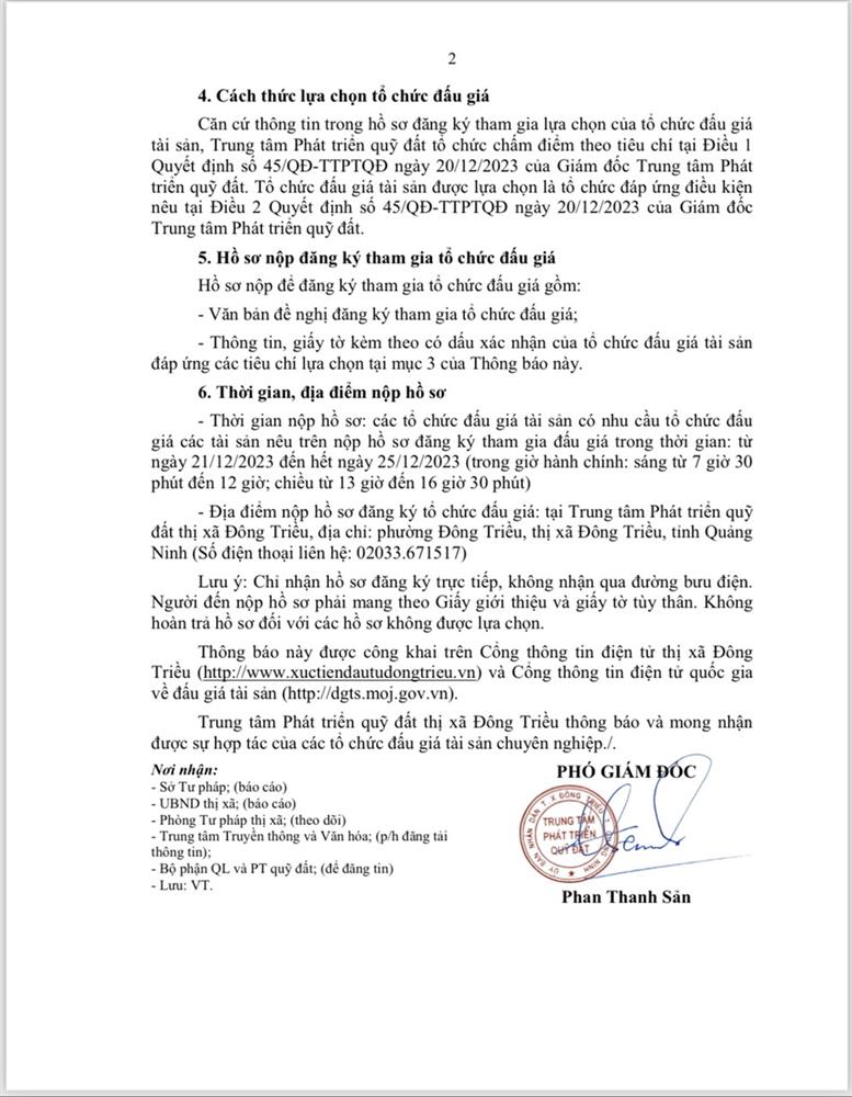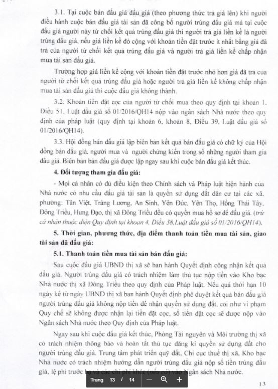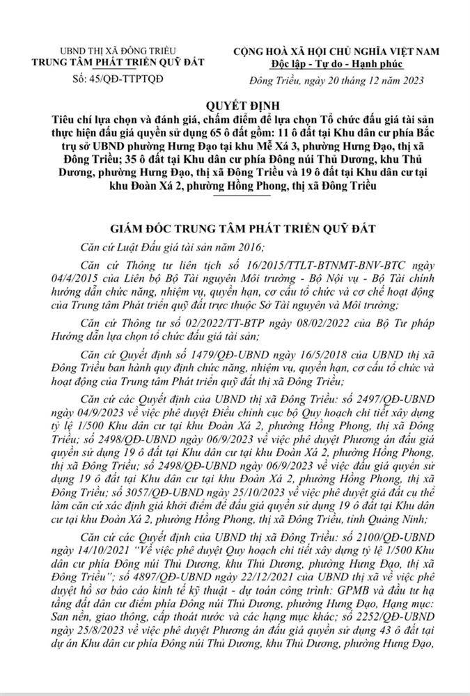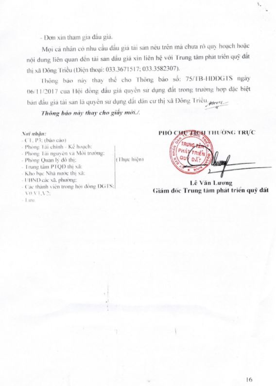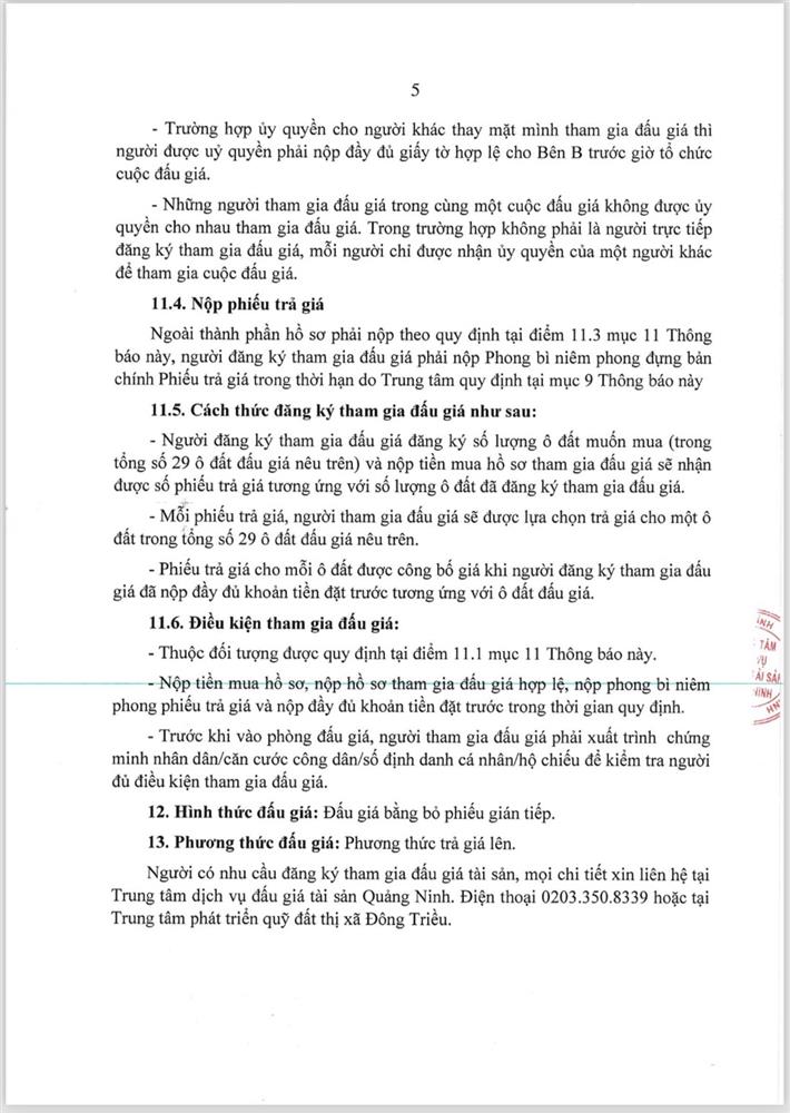 - Địa điểm mua hồ sơ: Tại UBND phường Mạo Khê và Trung tâm phát triển quỹ đất thị xã Đông Triều.