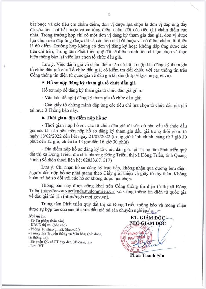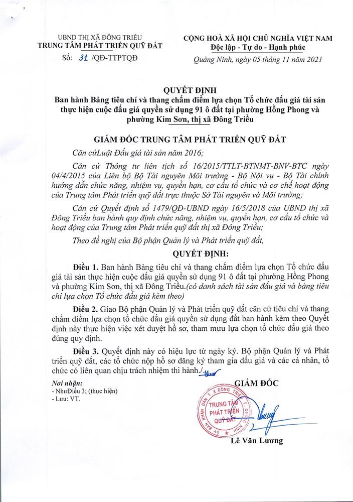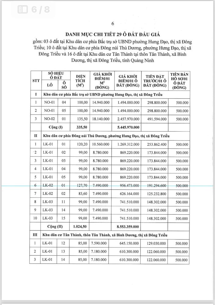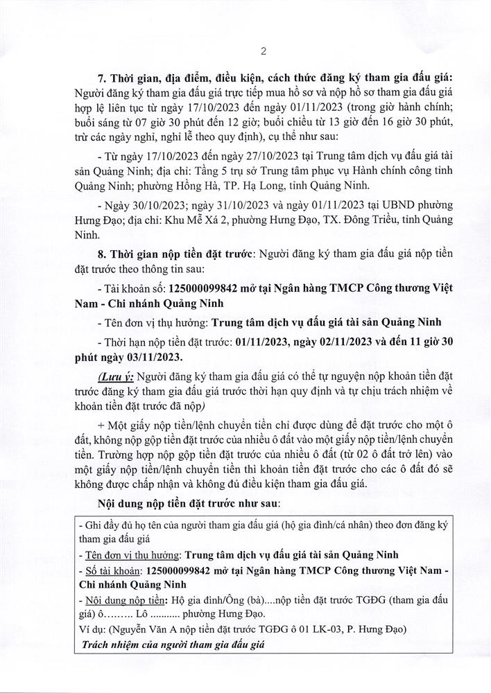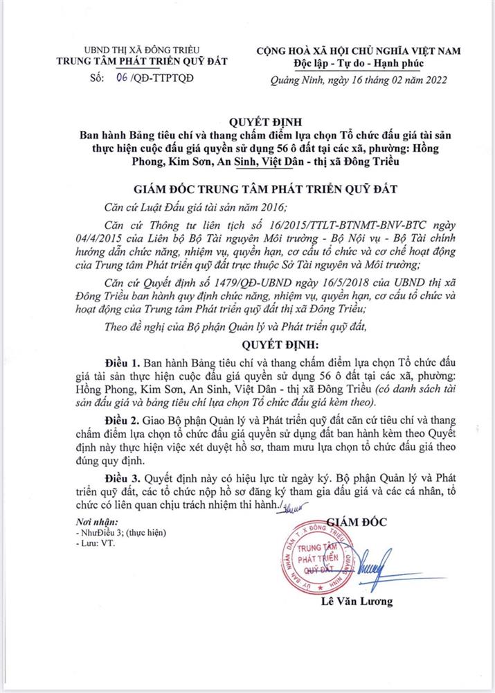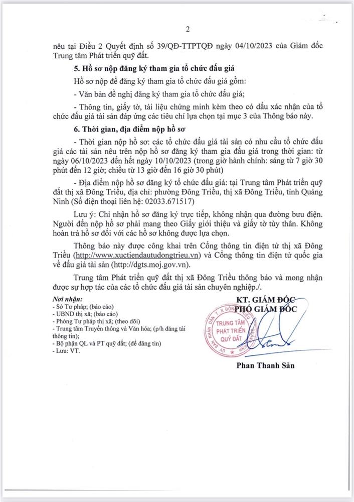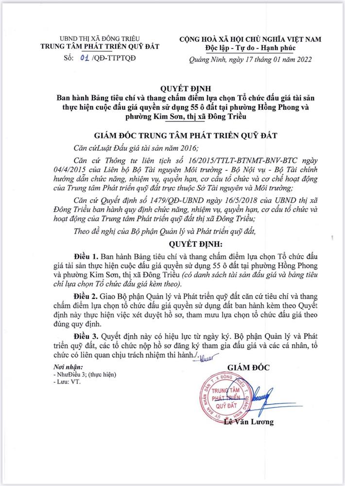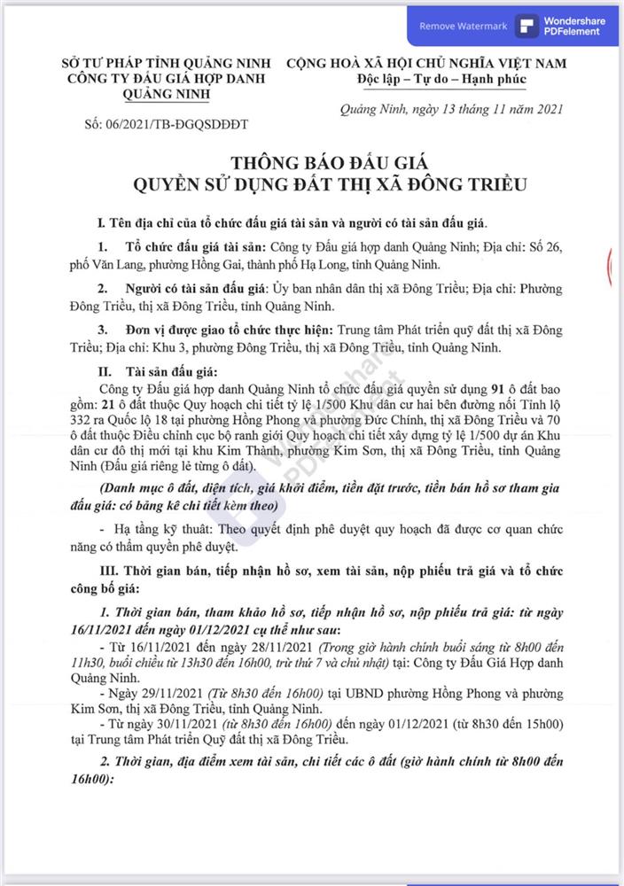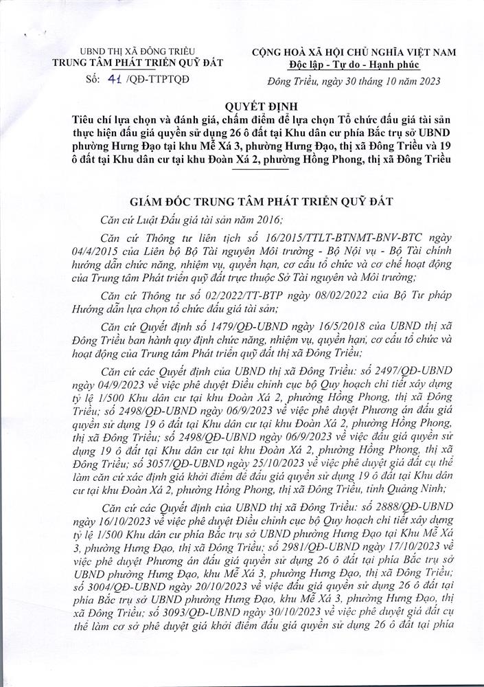 - Địa điểm mua hồ sơ: Tại UBND phường Mạo Khê và Trung tâm phát triển quỹ đất thị xã Đông Triều.