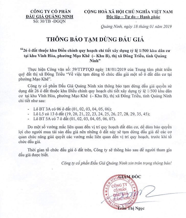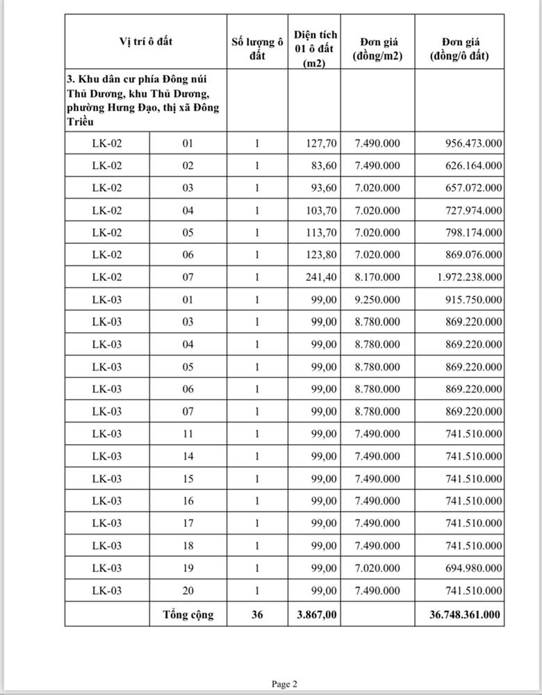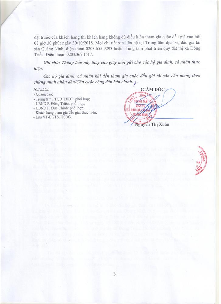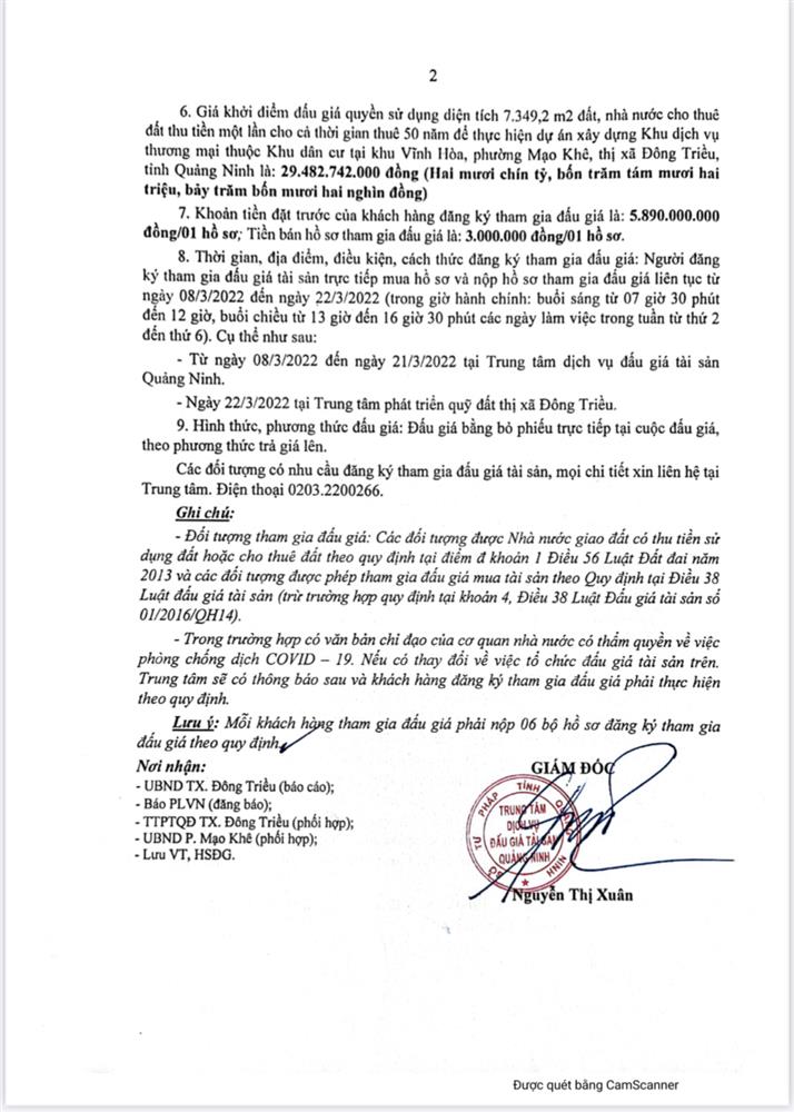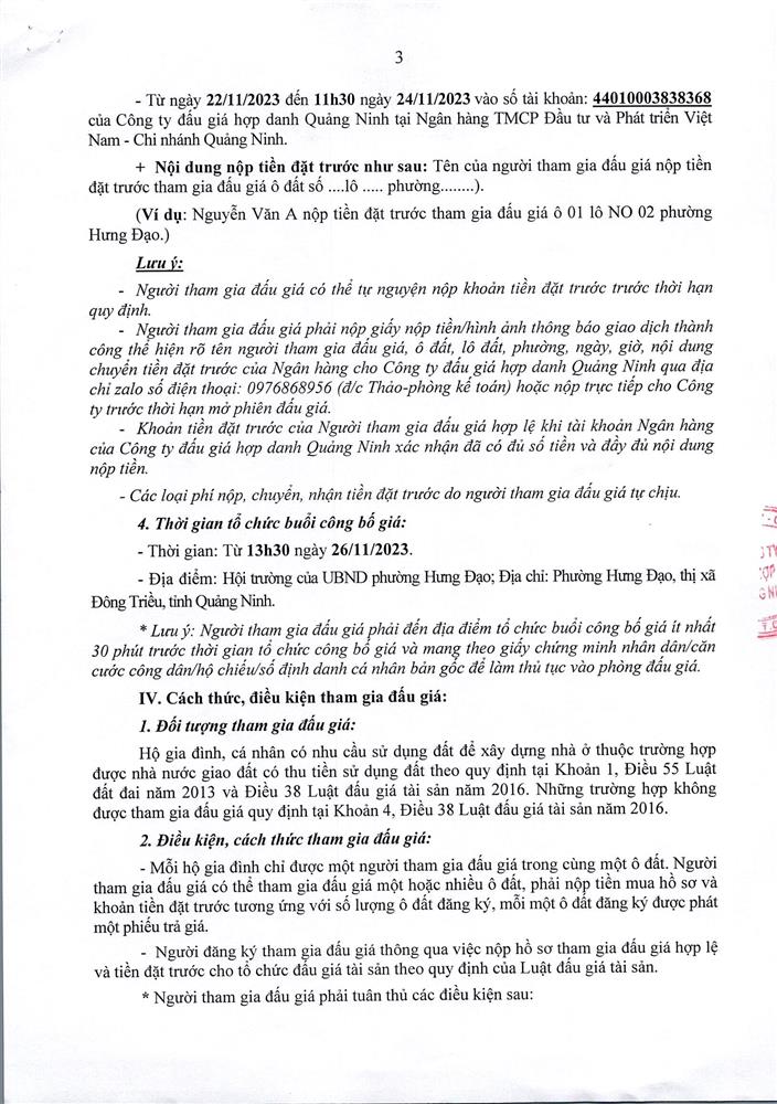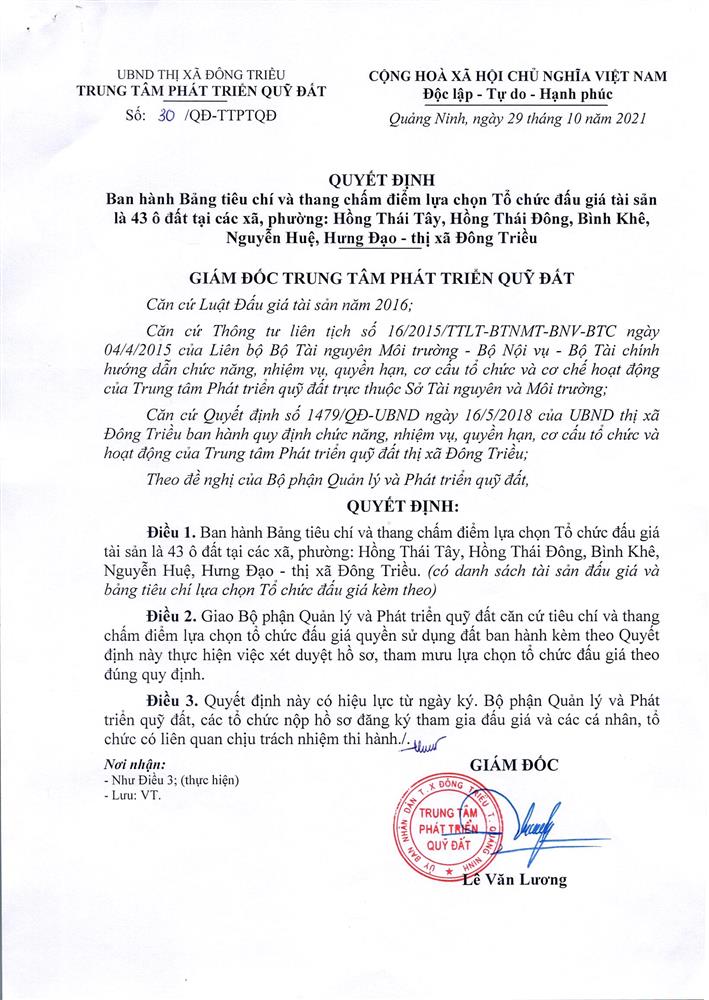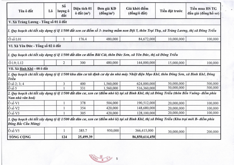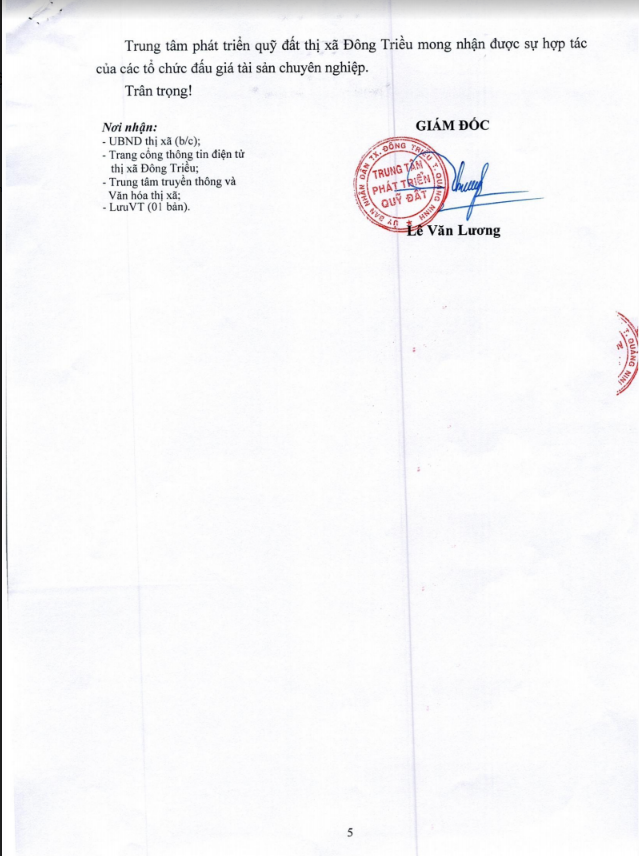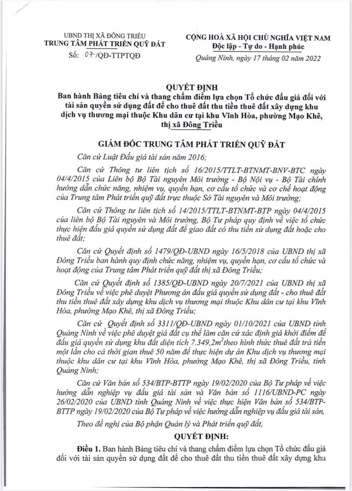 - Địa điểm mua hồ sơ: Tại UBND phường Mạo Khê và Trung tâm phát triển quỹ đất thị xã Đông Triều.