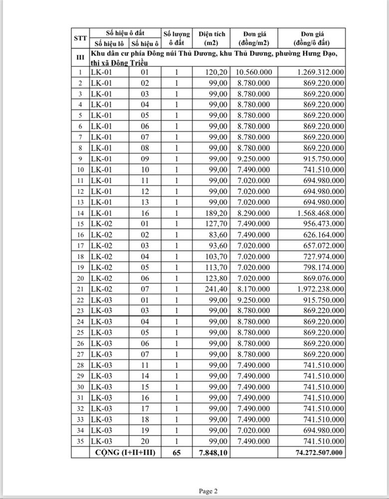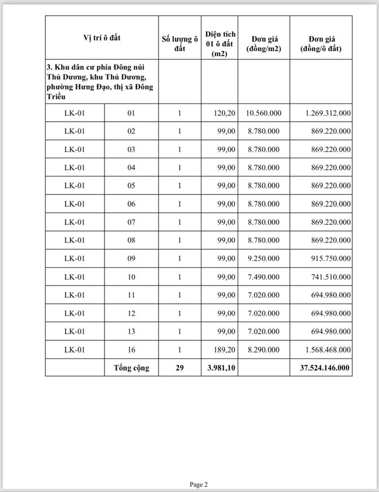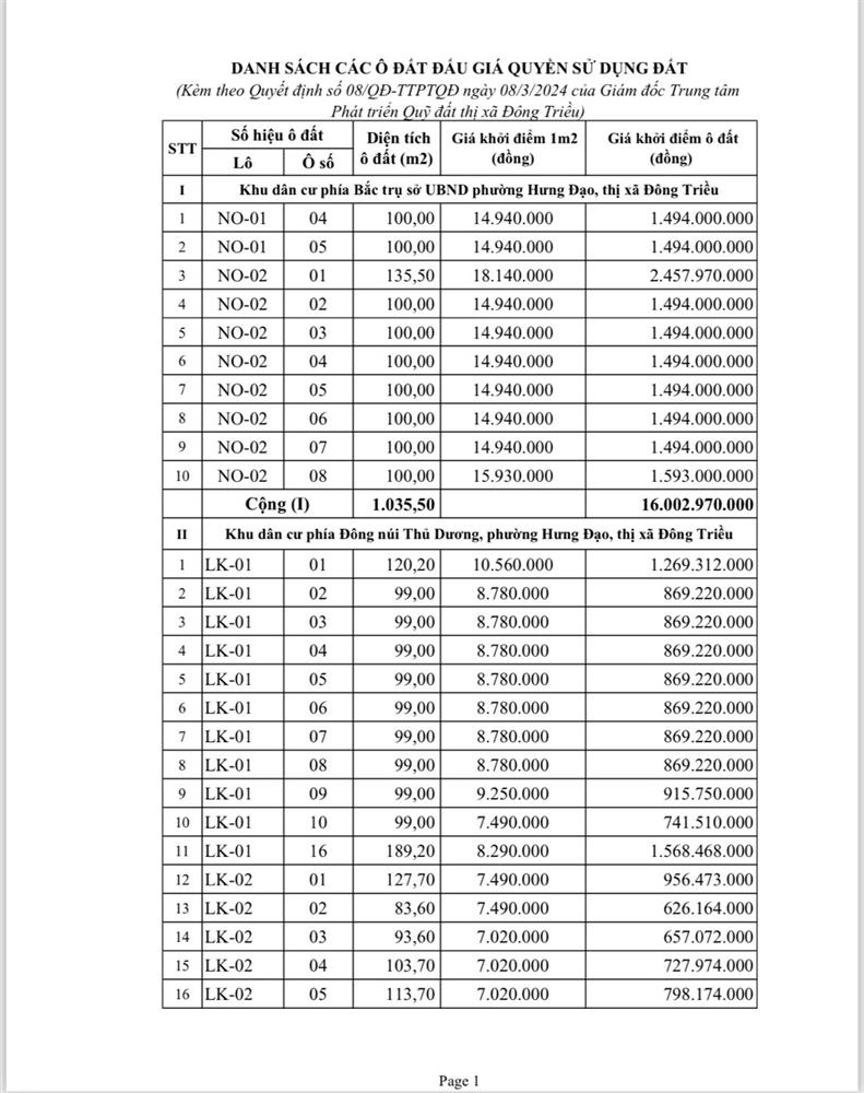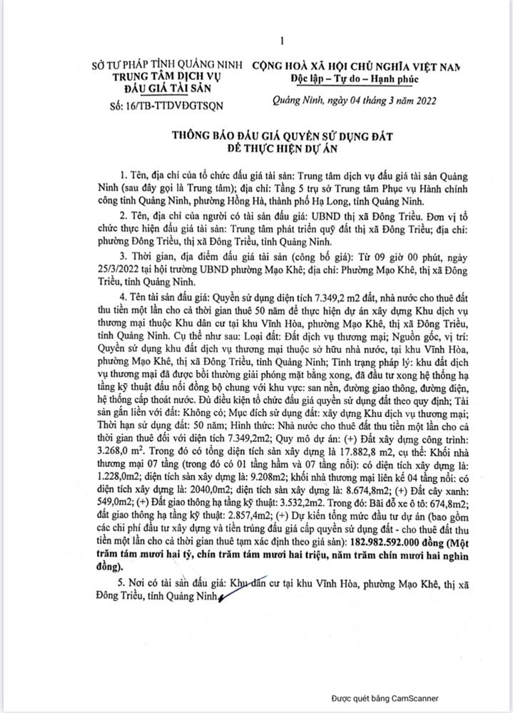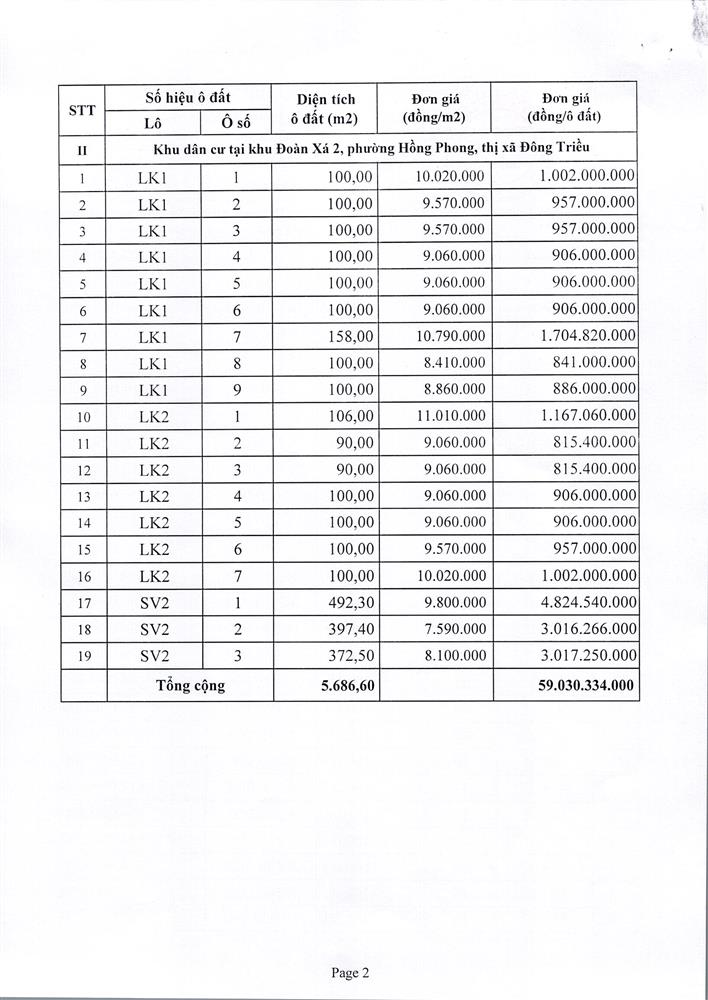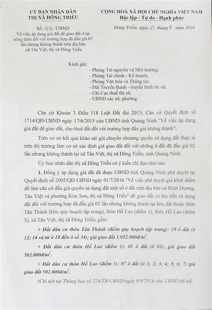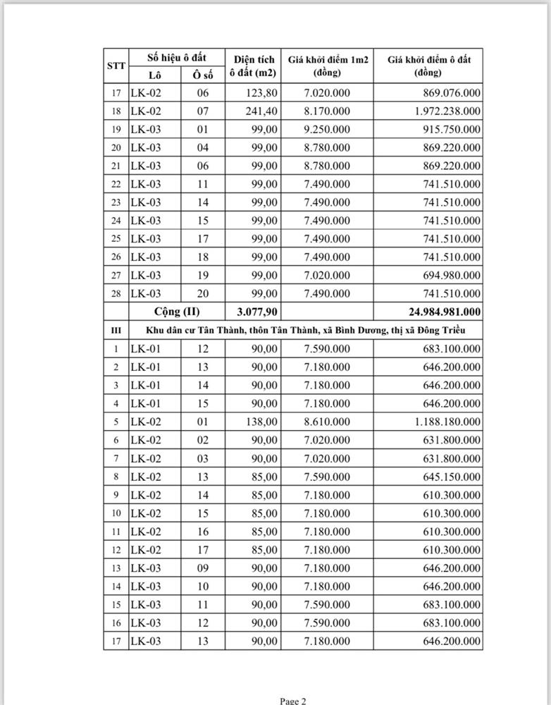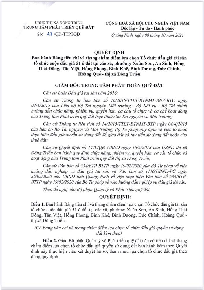 - Địa điểm mua hồ sơ: Tại UBND phường Mạo Khê và Trung tâm phát triển quỹ đất thị xã Đông Triều.