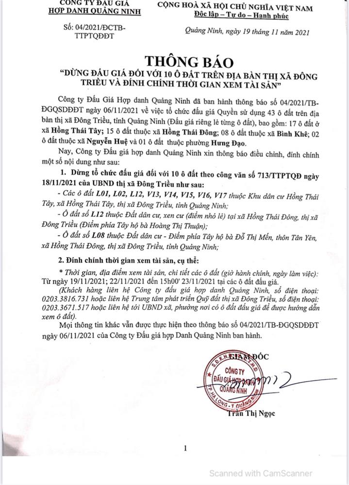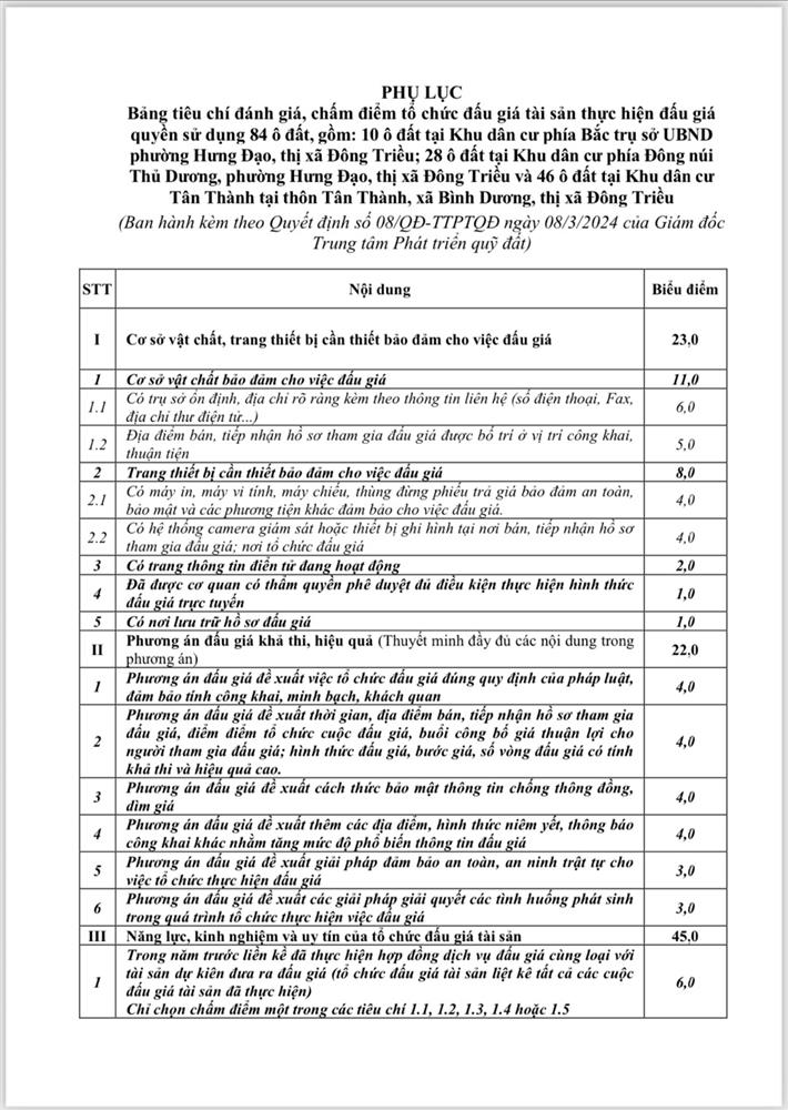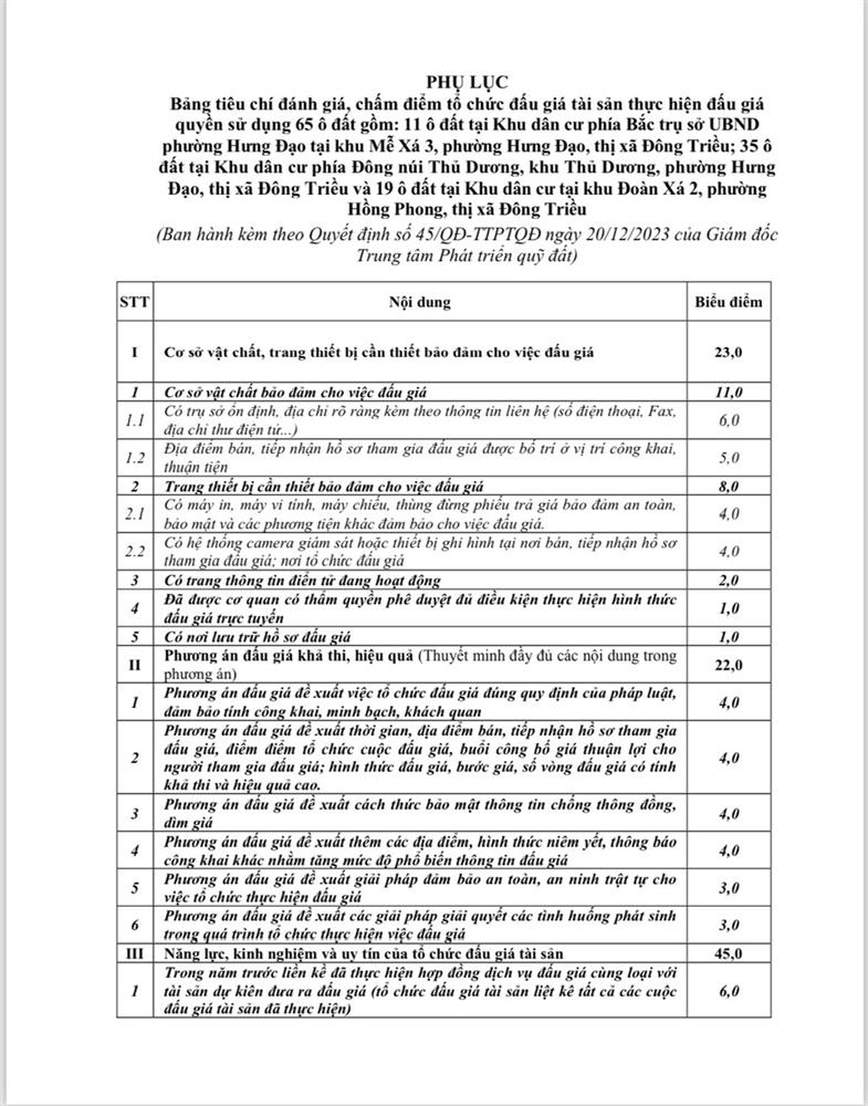 Để công tác tổ chức bán đấu giá được công khai, minh bạch, khách quan. Hội đồng đấu giá quyền sử dụng đất trong trường hợp đặc biệt bán đấu giá tài sản là quyền sử dụng đất dân cư thị xã Đông Triều giao: