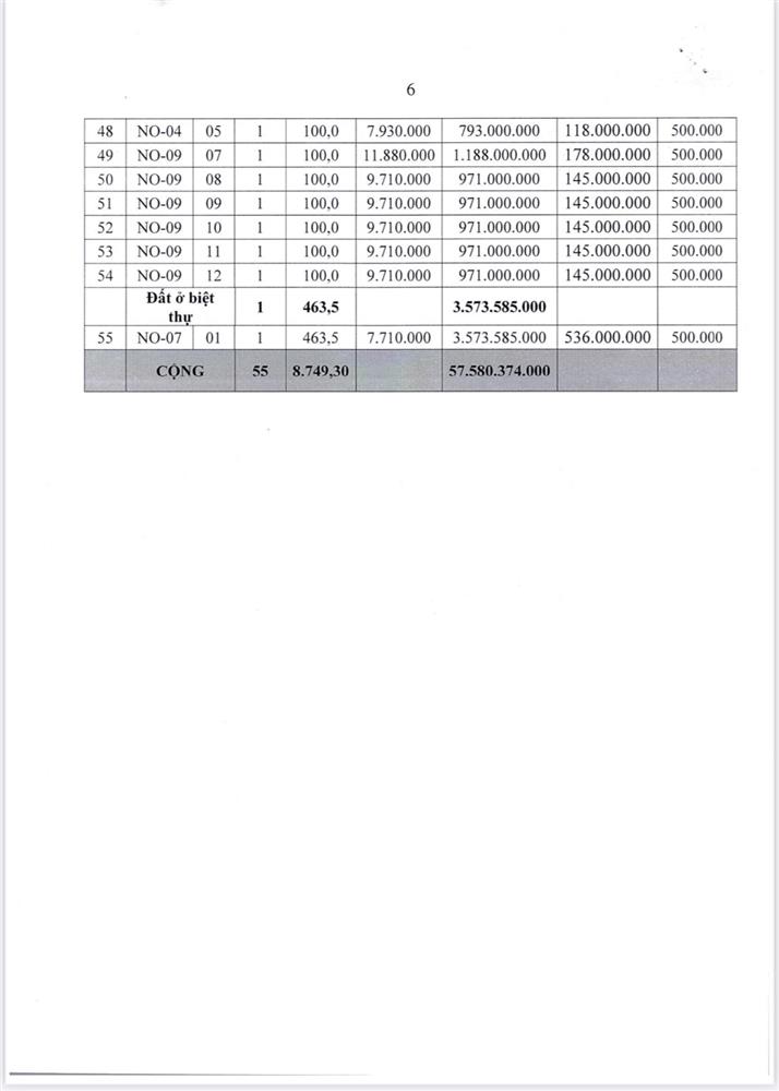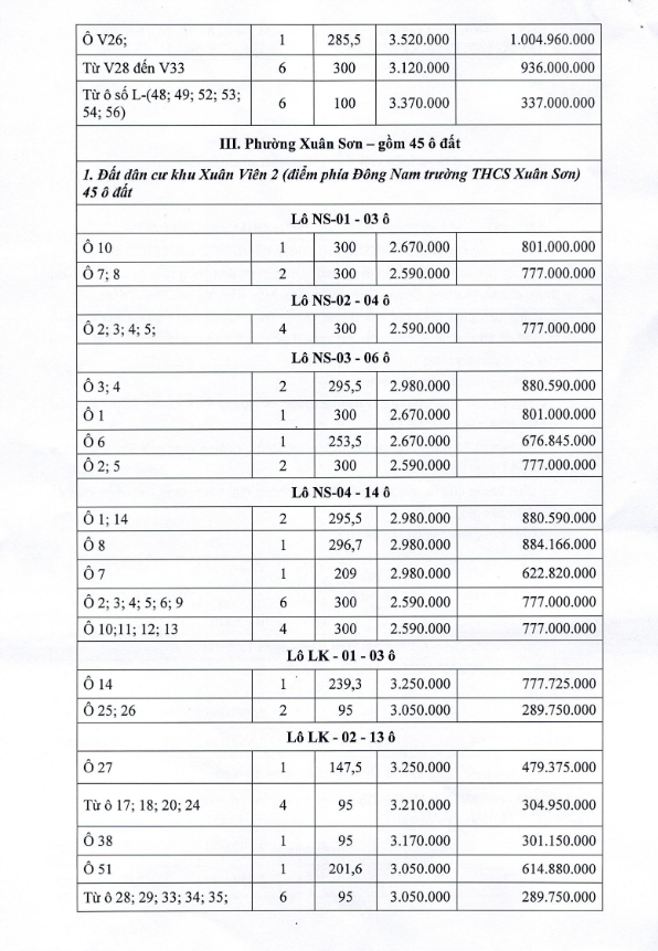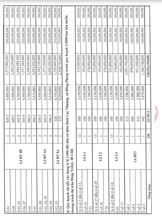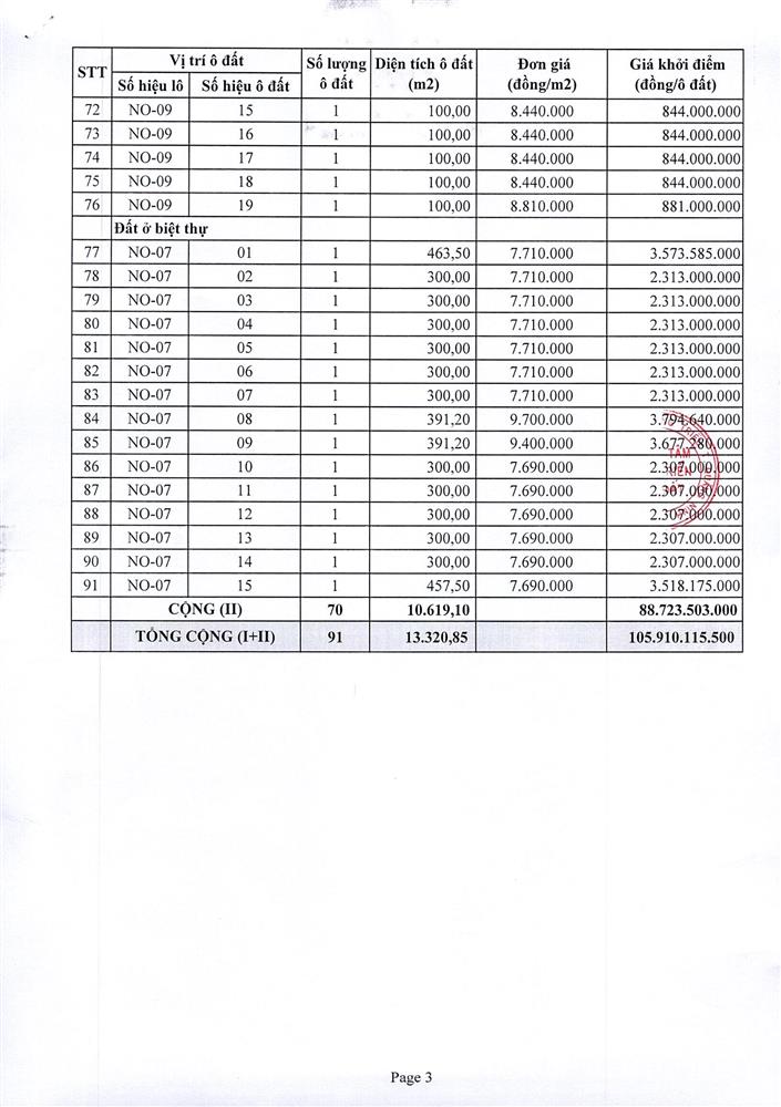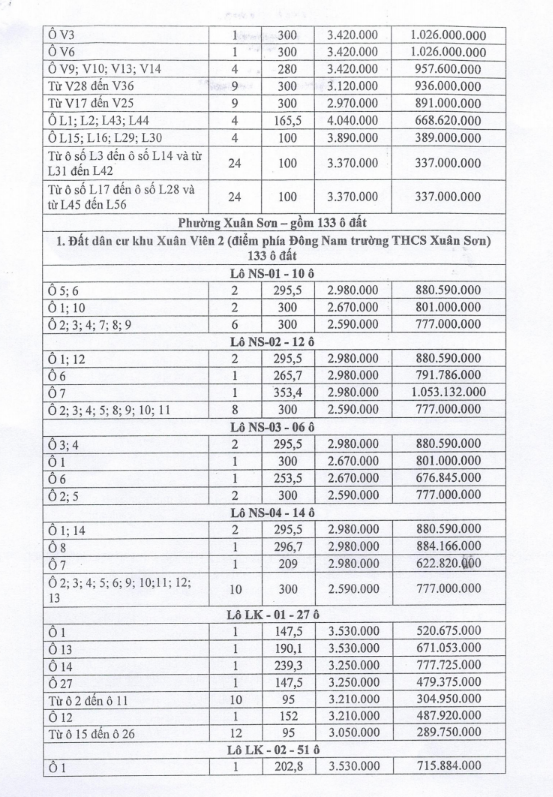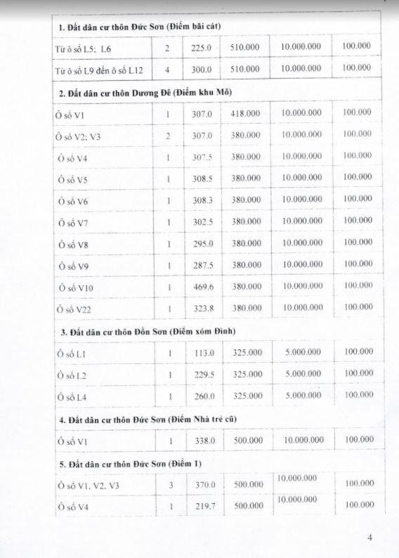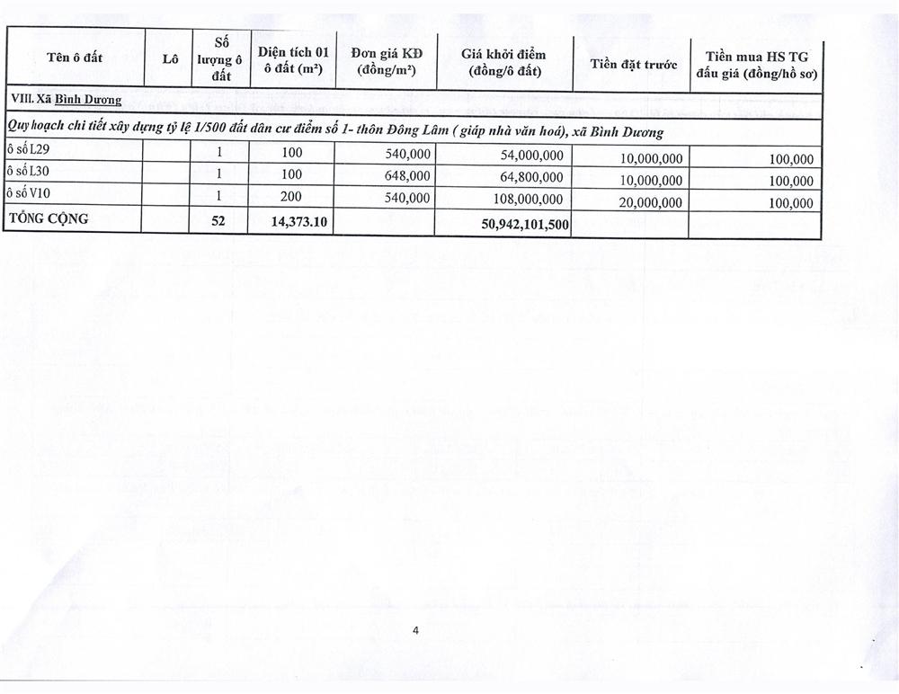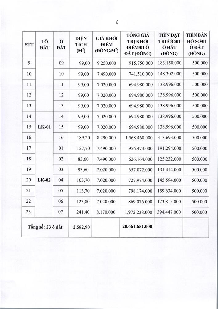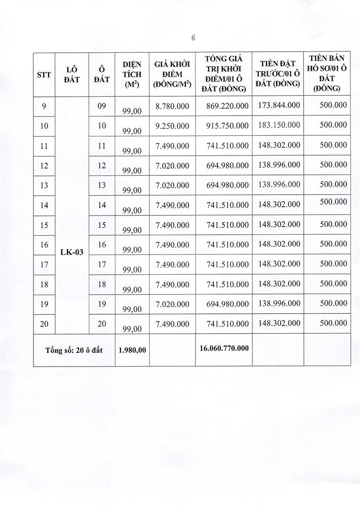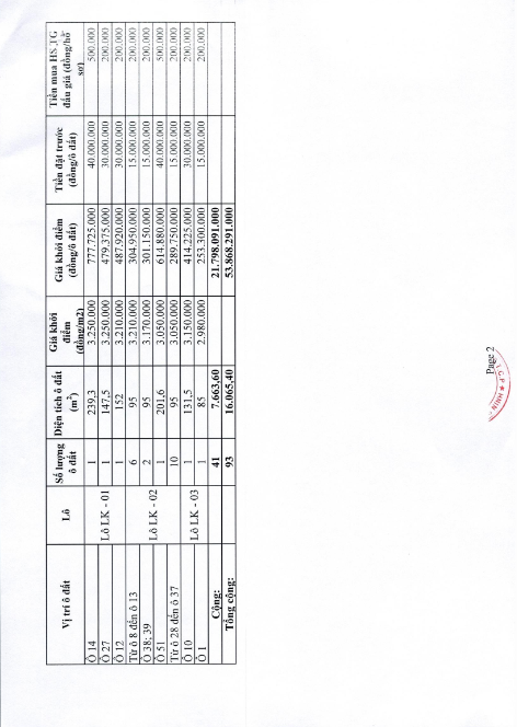- Vị trí, kích thước, tiền đặt trước, phí tham gia đấu giá của các ô đất như sau:
