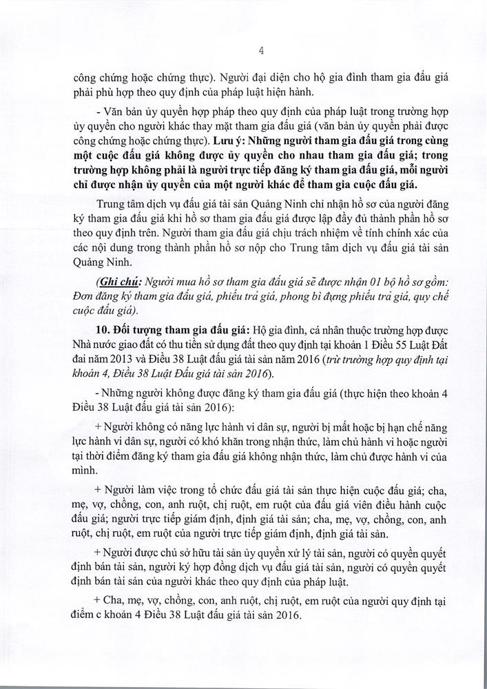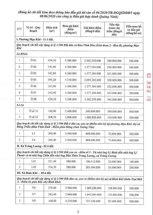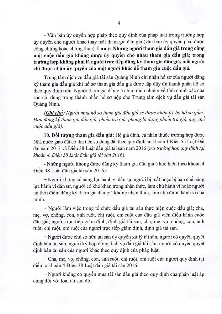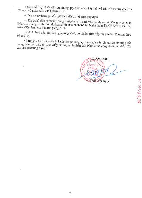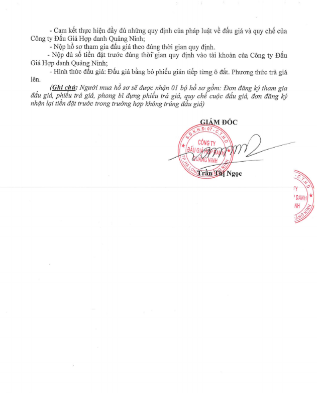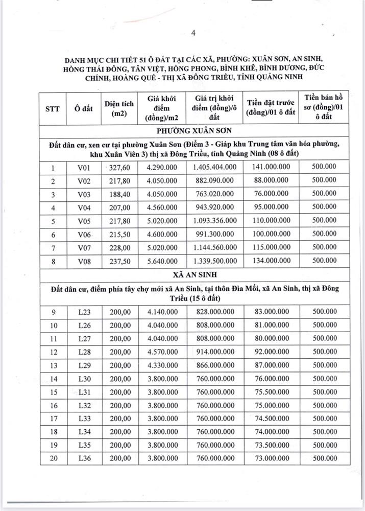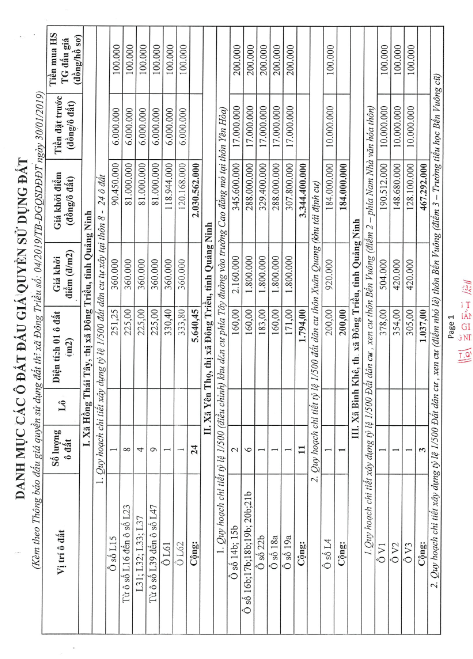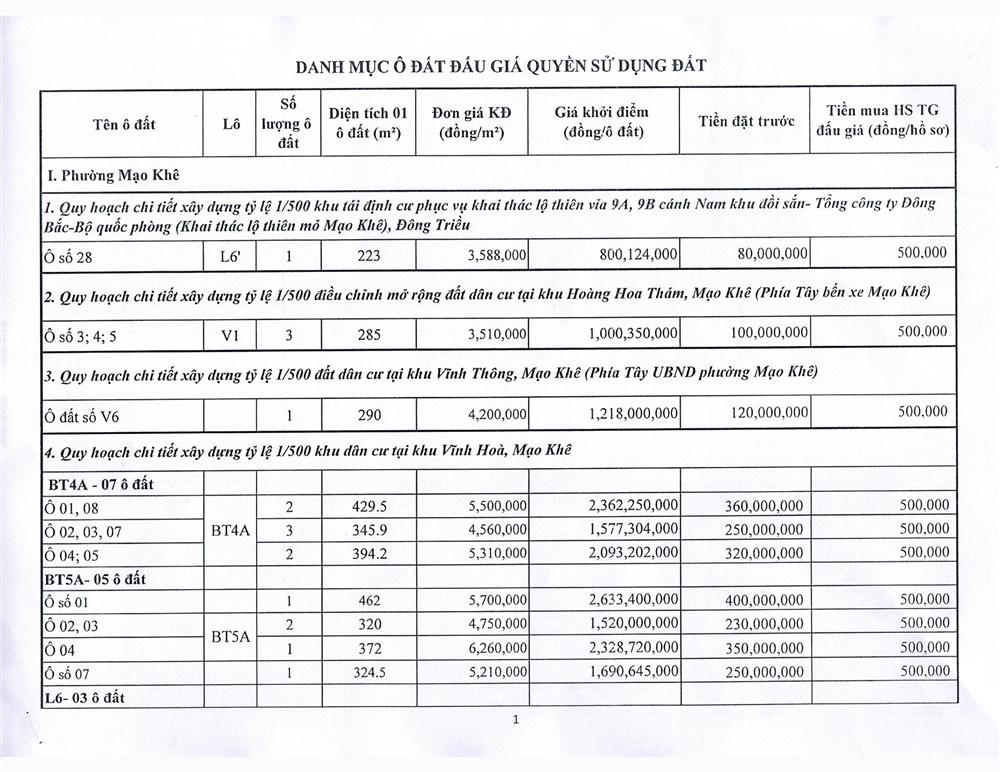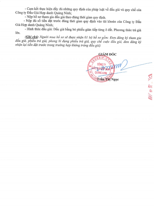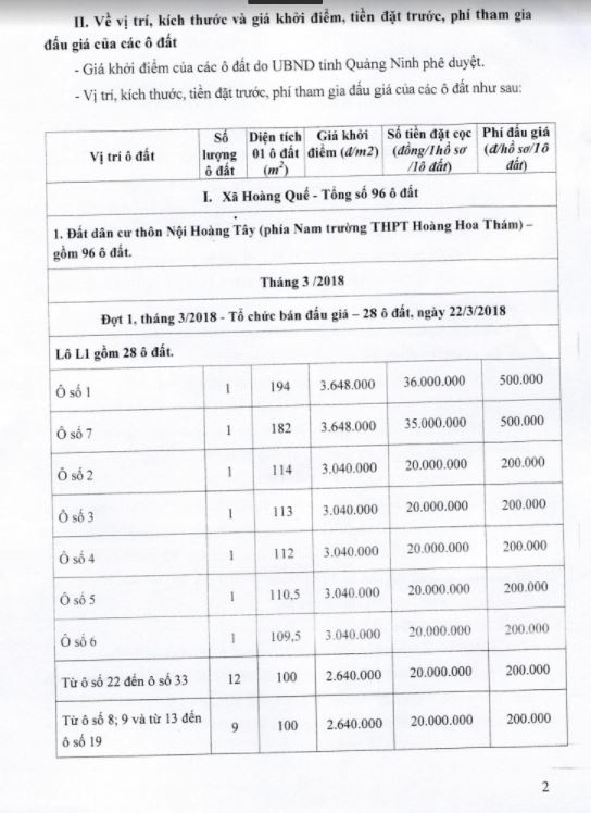 - Giá khởi điểm của các ô đất do UBND tỉnh Quảng Ninh phê duyệt.