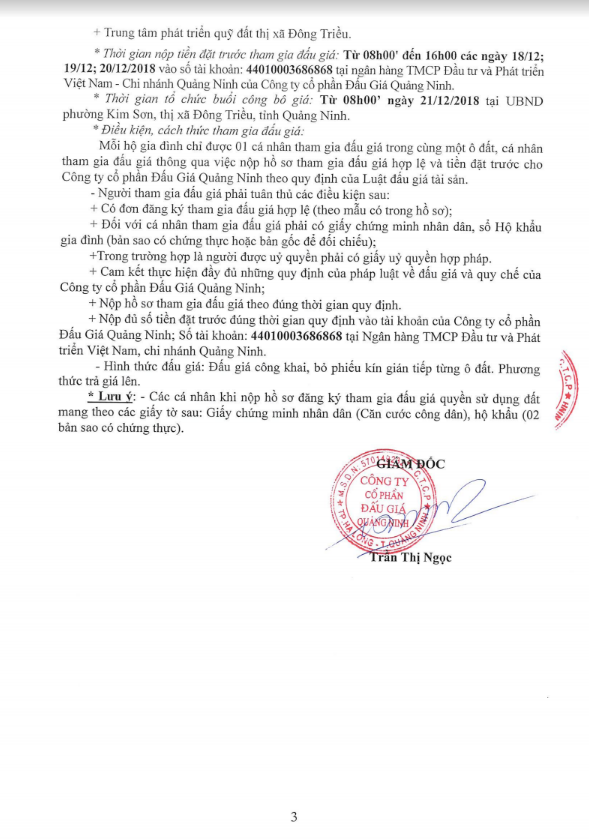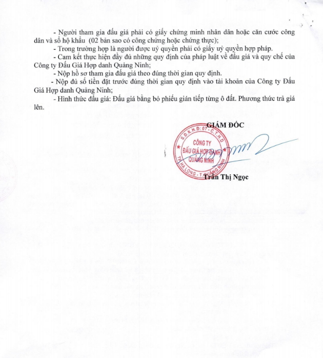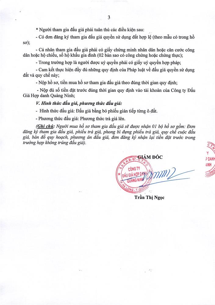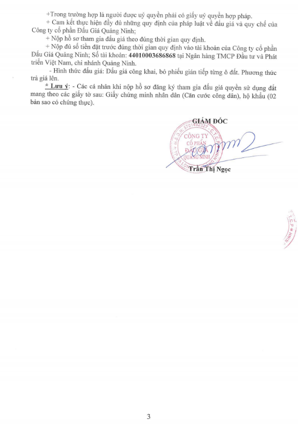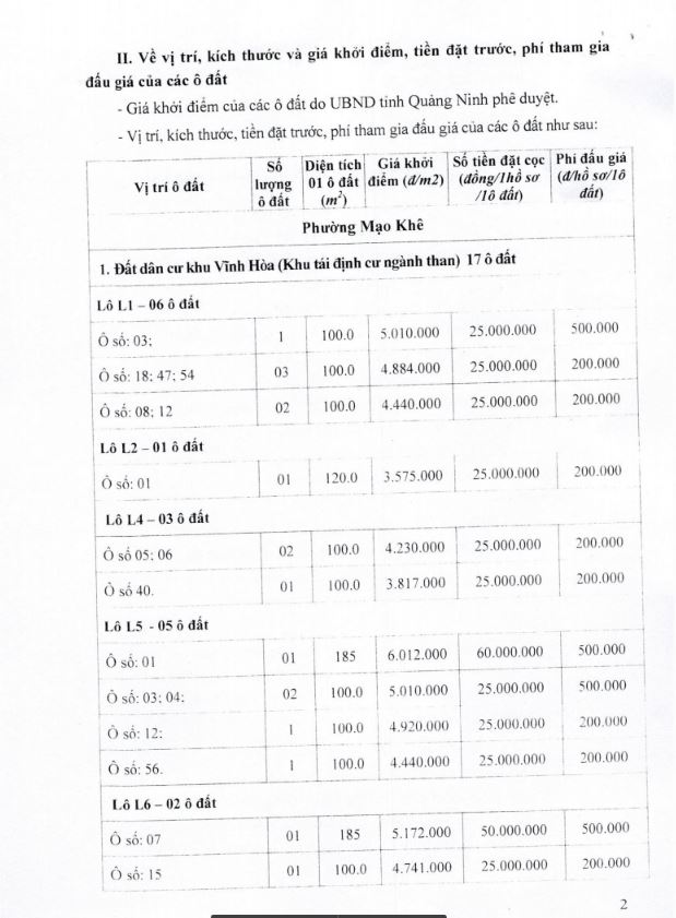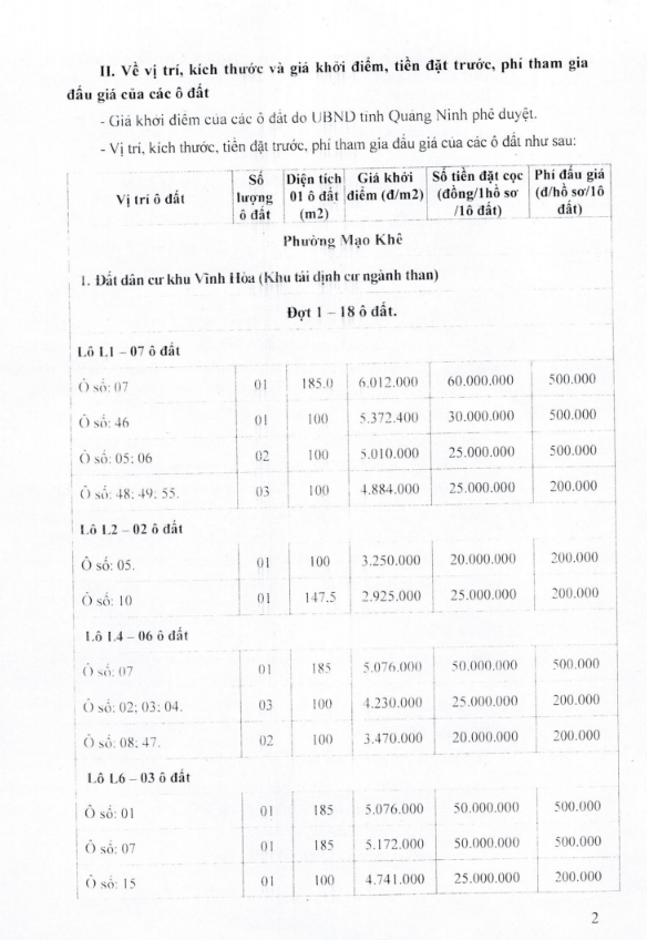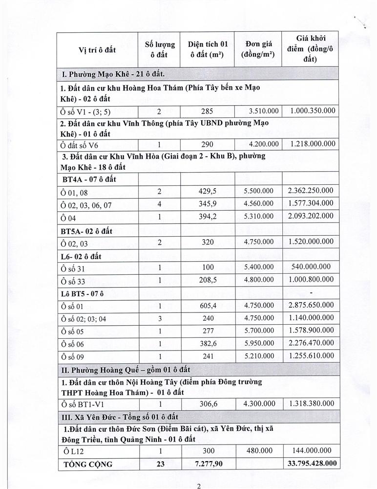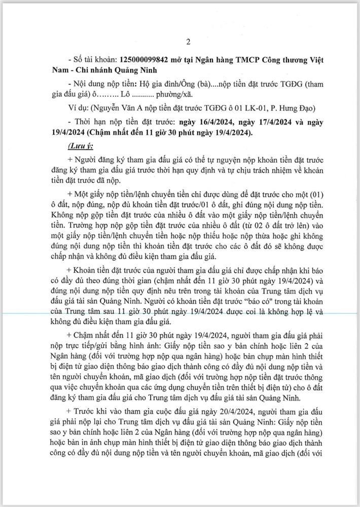 - Giá khởi điểm của các ô đất do UBND tỉnh Quảng Ninh phê duyệt.