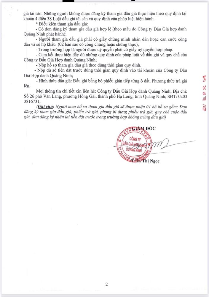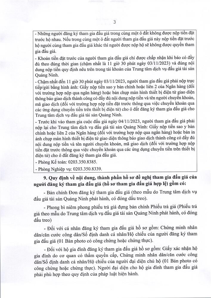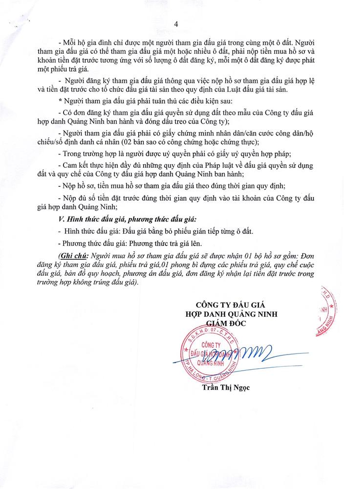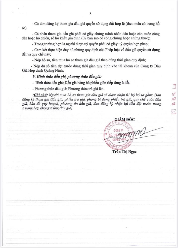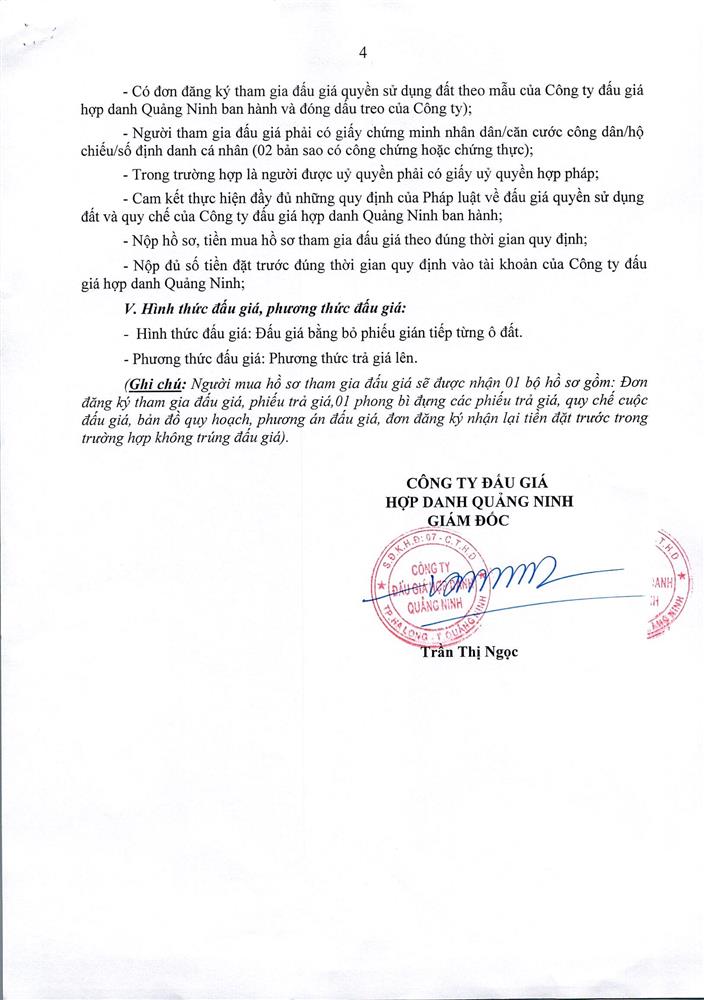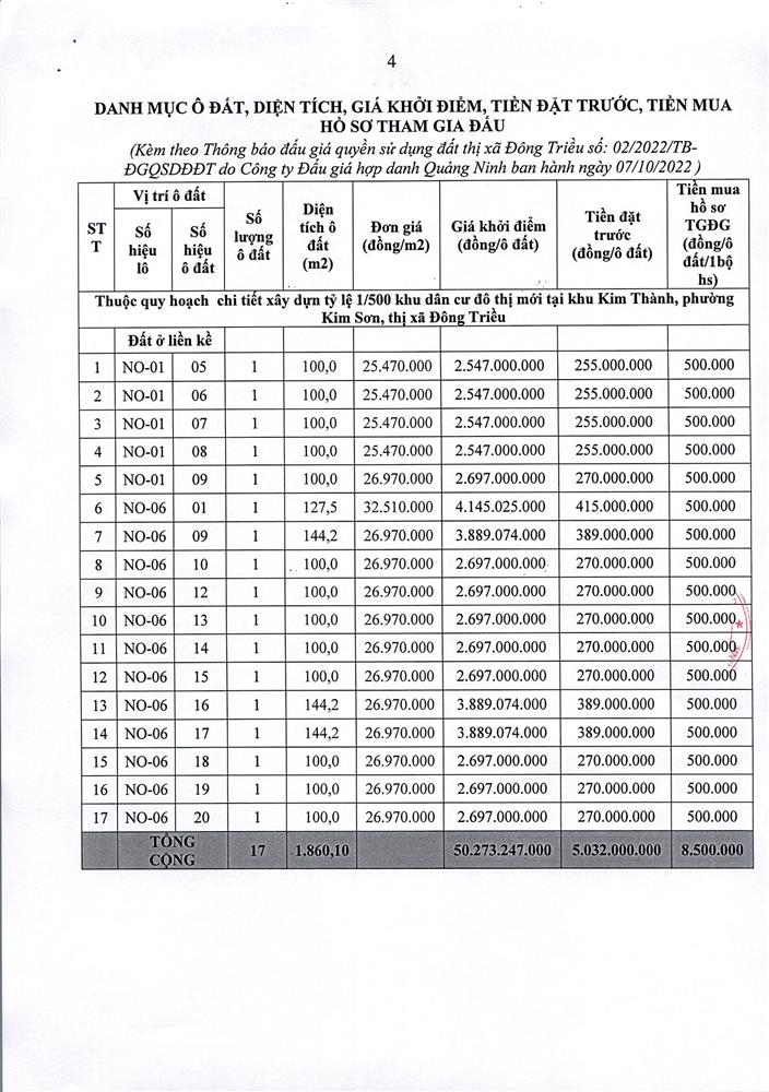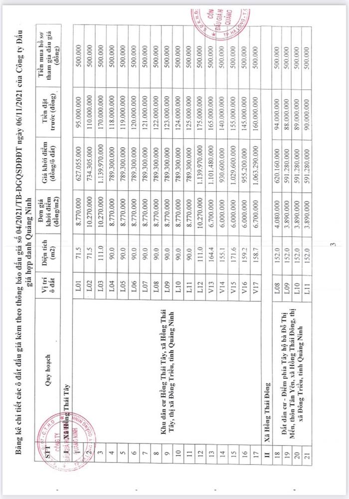 - Giá khởi điểm của các ô đất do UBND tỉnh Quảng Ninh phê duyệt.