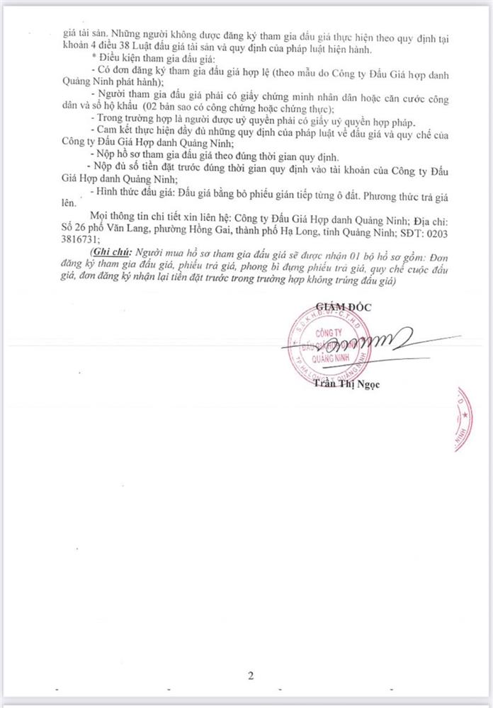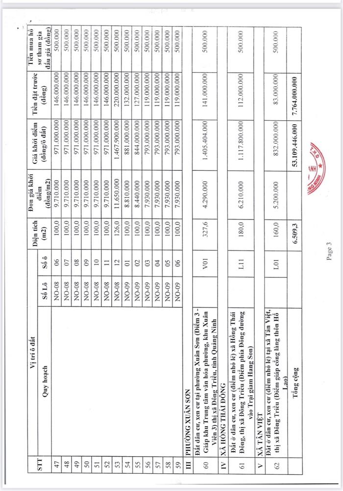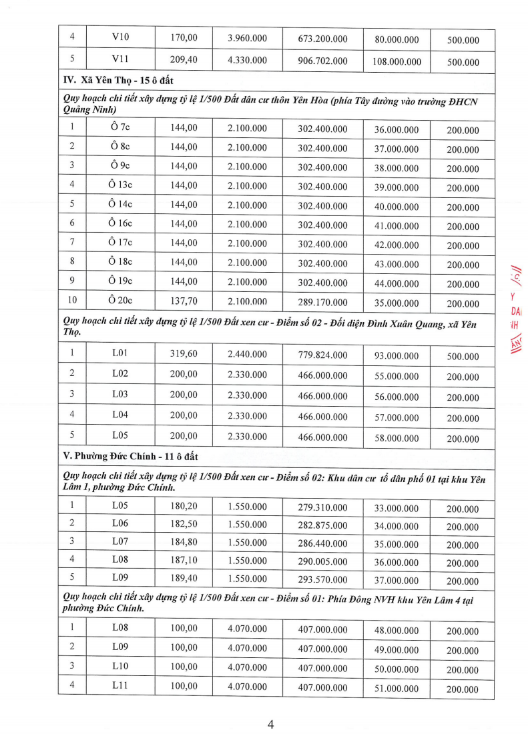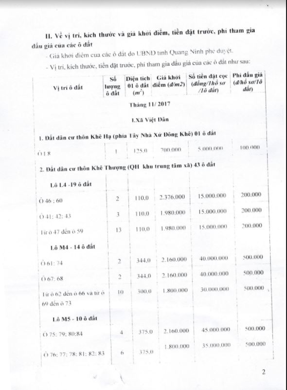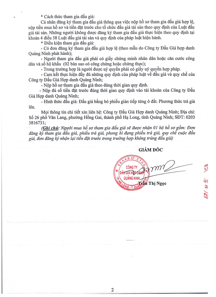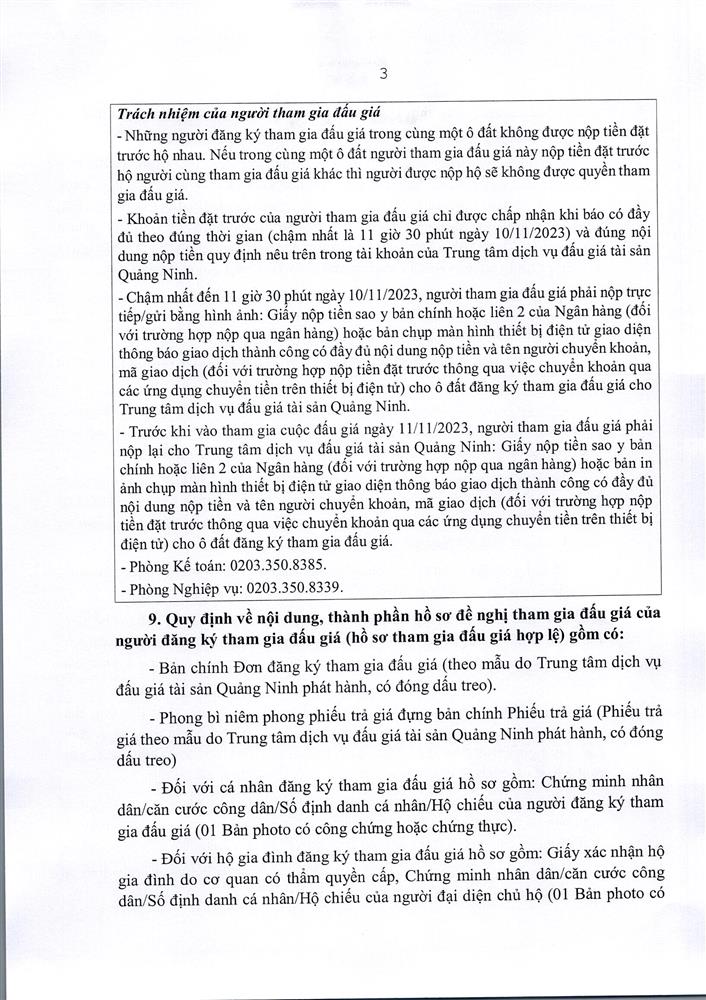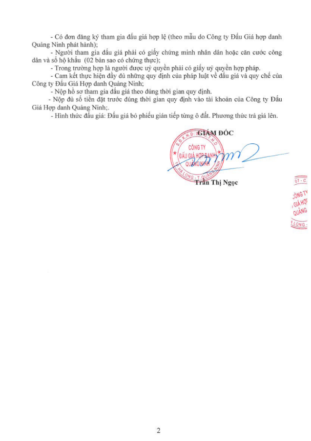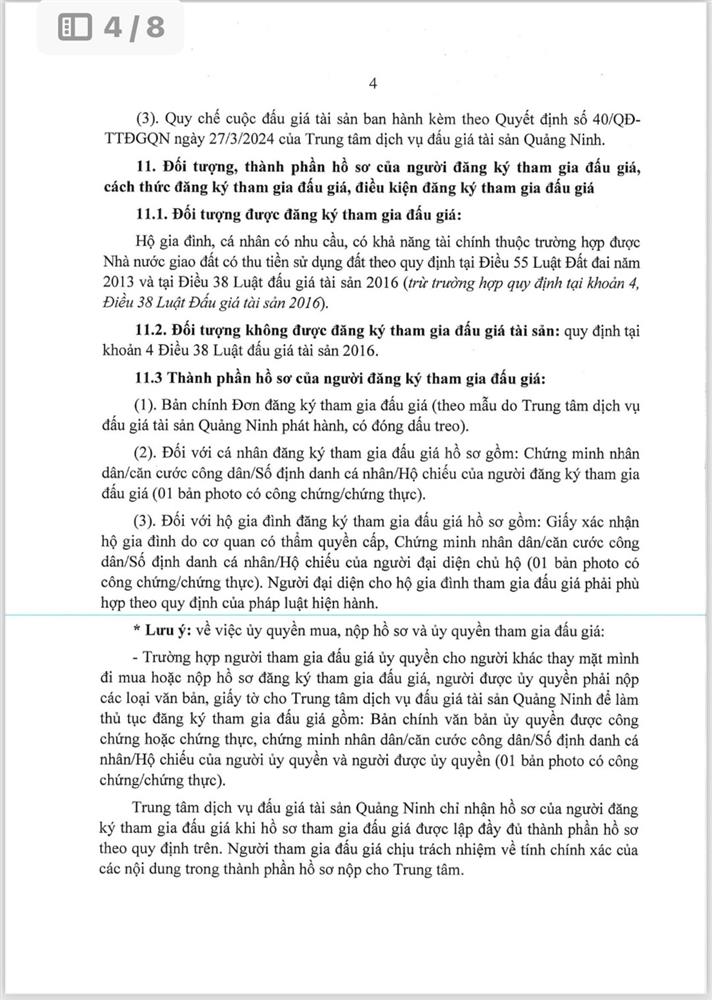 - Giá khởi điểm của các ô đất do UBND tỉnh Quảng Ninh phê duyệt.