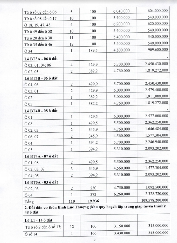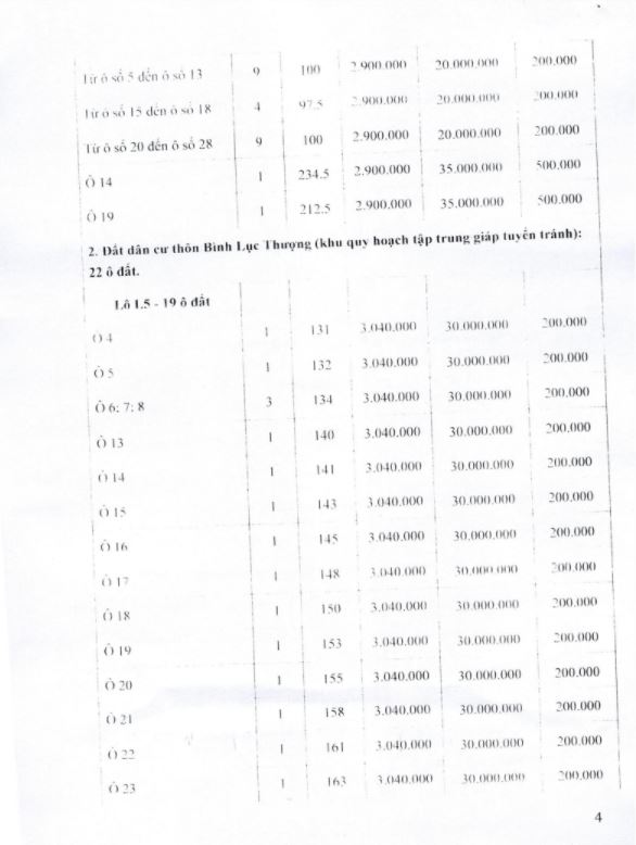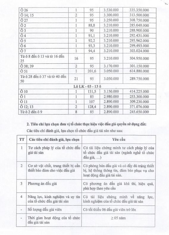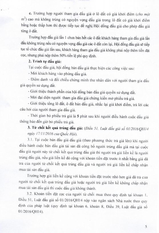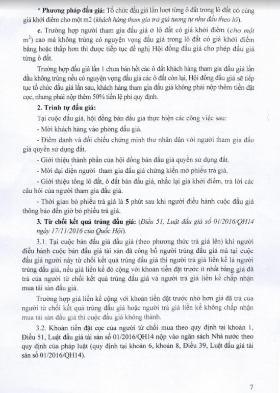 Chú ý: Trường hợp người tham gia đấu giá ở lô đất có giá khởi điểm (cho một m2) cao mà không trúng có nguyện vọng đấu giá trong lô đất có giá khởi điểm bằng hoặc thấp hơn thì được tiếp tục đề nghị Hội đồng đấu giá cho phép đấu giá từng ô đất.