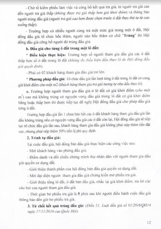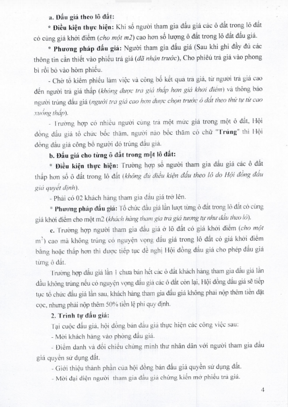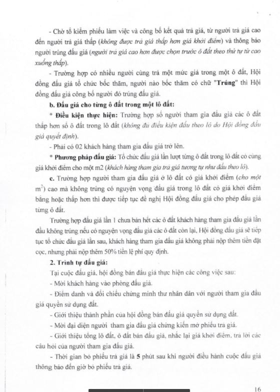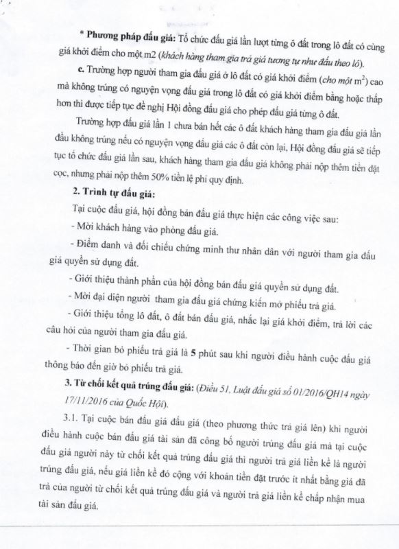 - UBND các xã, phường có đất bán đấu giá thông báo kế hoạch tổ chức bán đấu giá QSD đất dân cư rộng rãi trên hệ thống loa truyền thanh của địa phương và bàn giao cho các thôn, khu (trên địa bàn xã, phường quản lý) niêm yết thông báo kế hoạch tổ chức bán đấu giá QSD đất tại nhà văn hóa thôn, khu để người dân có nhu cầu được biết tham gia đấu giá.