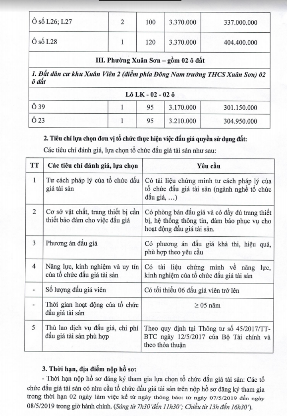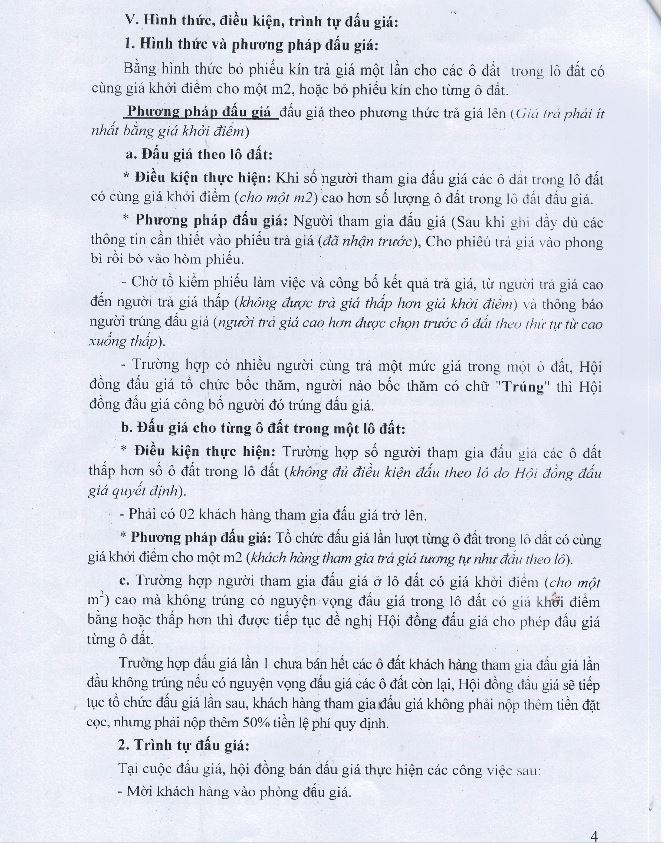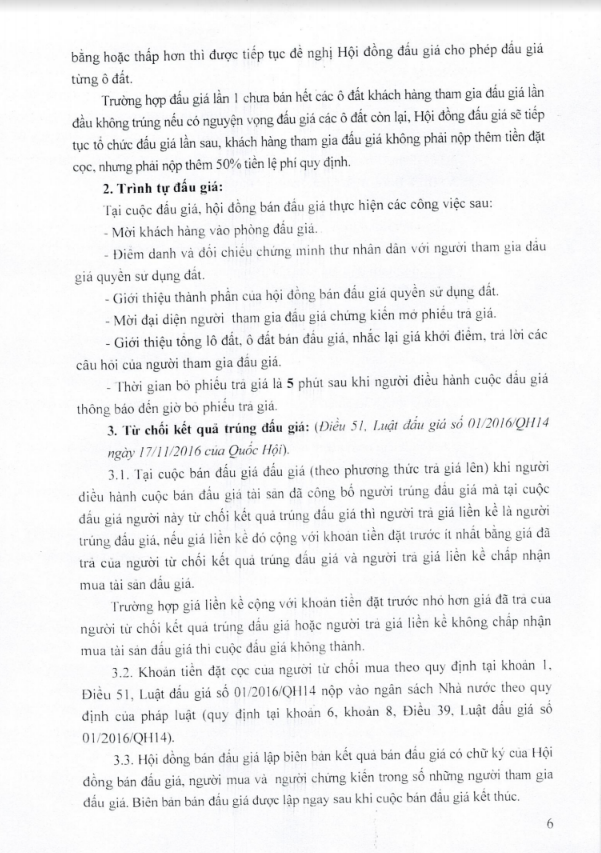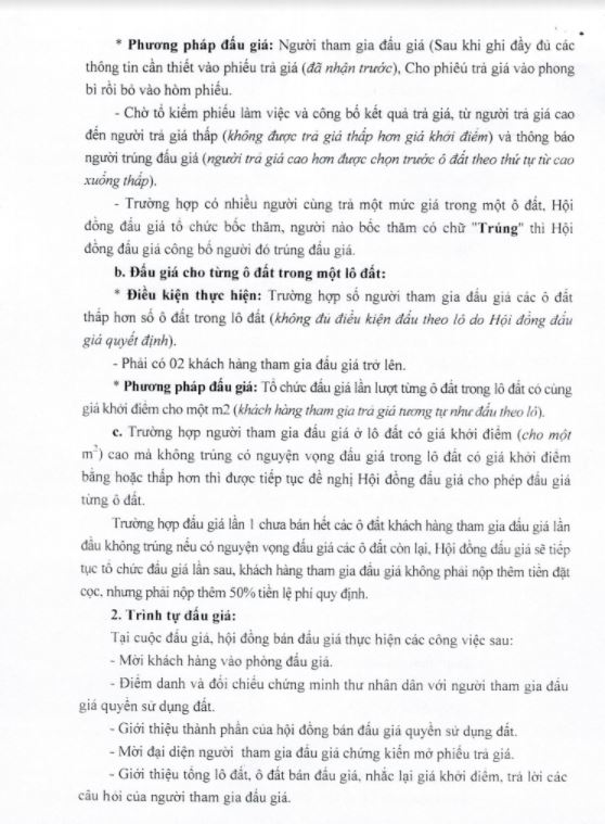 - UBND các xã, phường có liên quan niêm yết thông báo kế hoạch tổ chức bán đấu giá QSD đất tại trụ sở UBND các xã, phường để người dân có nhu cầu được biết tham giá đấu giá.