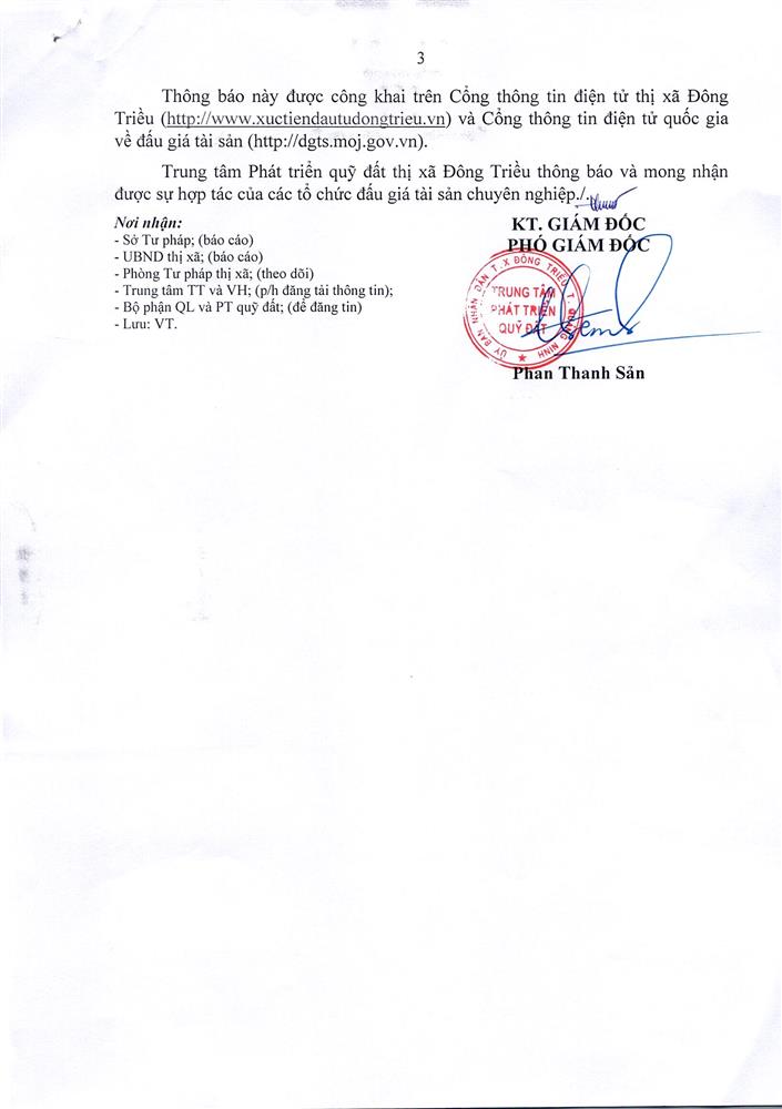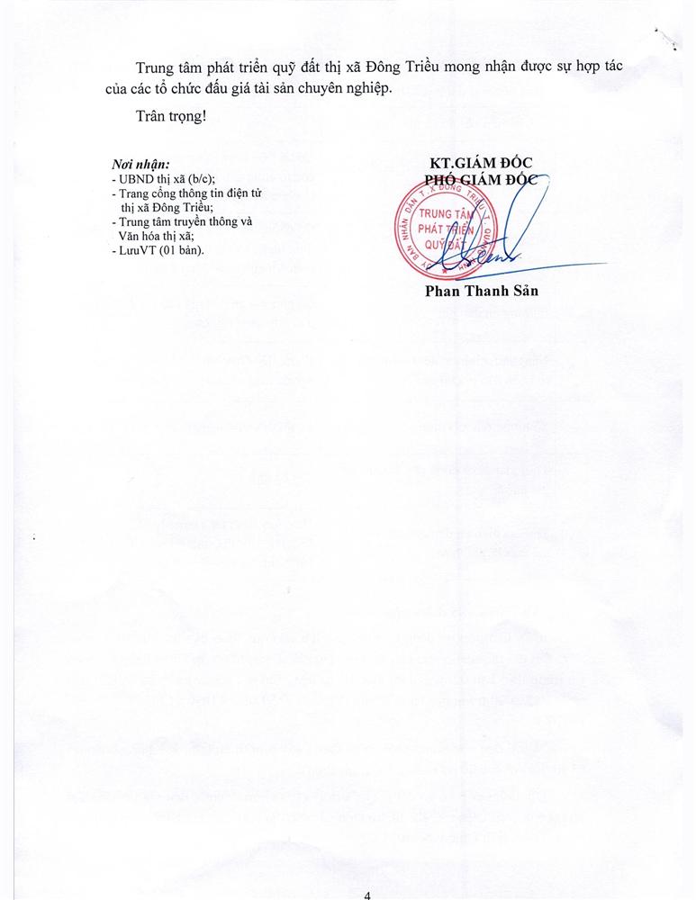 - Đài truyền thanh - Truyền hình thị xã thông báo rộng rãi trên Đài truyền thanh - Truyền hình thị xã để người dân có nhu cầu được biết tham giá đấu giá.