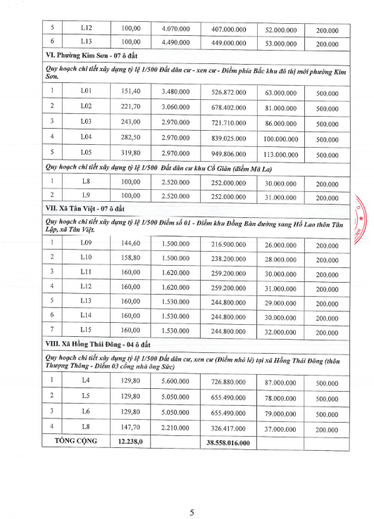 Tháng 8 – Đợt 4 – 17 ô đất.