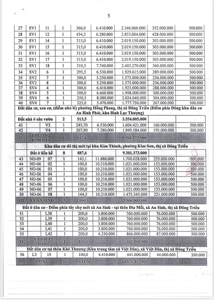 - Là quyền sử dụng đất dân cư tại xãBình Dương và phường Kim Sơn, thị xã Đông Triều.