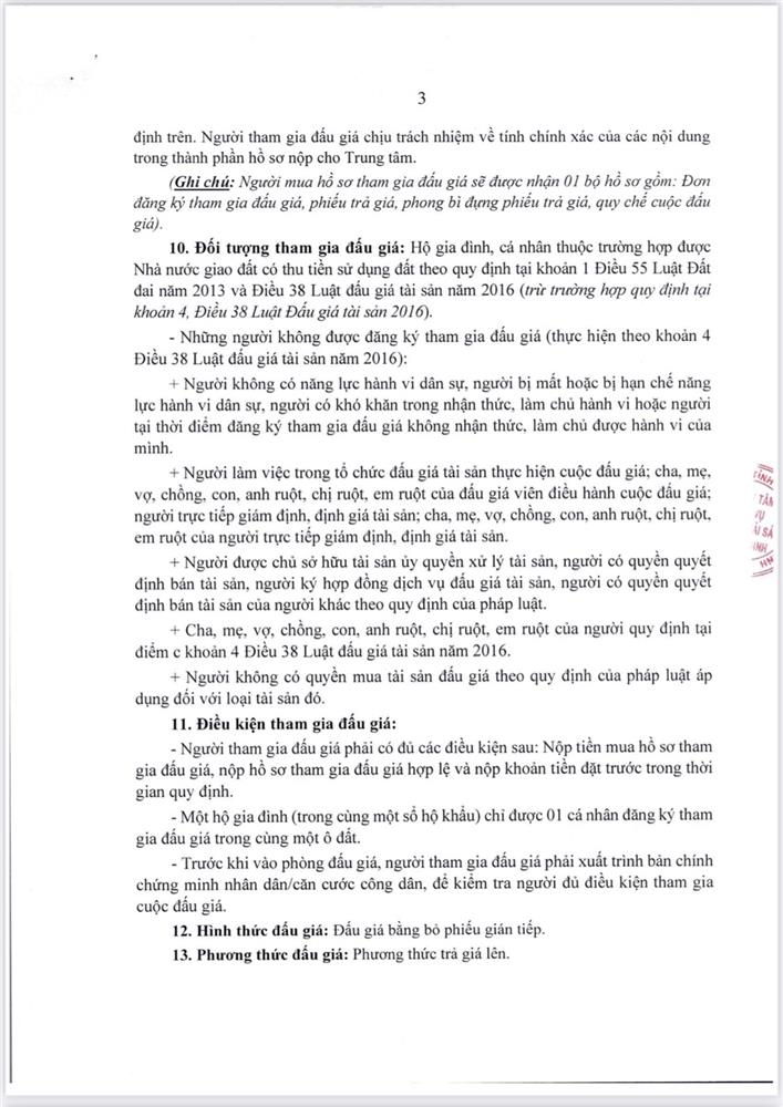 + Hồ sơ gồm: Sơ đồ quy hoạch; Phong bì - Phiếu trả giá; Thông báo của Hội đồng đấu giá quyền sử dụng đất dân cư.